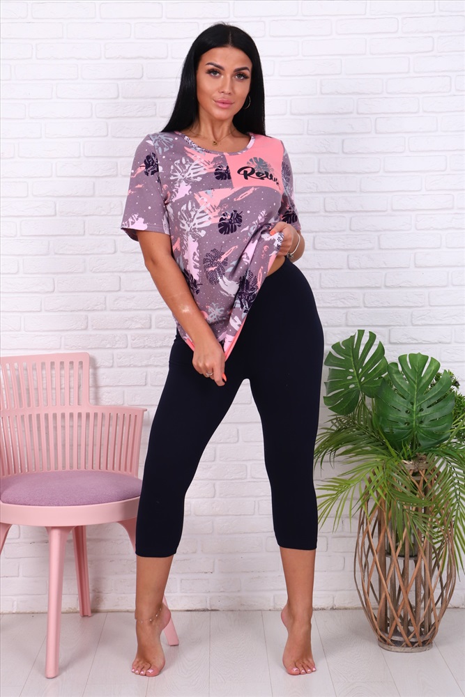 Состав: хлопок 100%; хлопок 95%, лайкра 5% Модель: Костюм 57024 Тип товара: костюм с бриджами Материал: кулирка | кулирка с лайкрой | кулирка | кулирка с лайкрой Бренд: Натали Суслова Карман: без карманов Особенности: на резинке Отделка: с печатью Посадка: высокая посадка Рисунок: надпись | цветы Рукав: короткий рукав Сезонность: лето | весна Силуэт: полуприлегающий Стиль: повседневный Воротник: без воротника Застежка: без застежки Удобный костюм для дачников: туника из кулирки и бриджи ниже колен из кулирки с лайкрой Таблица размеров и весабриджи