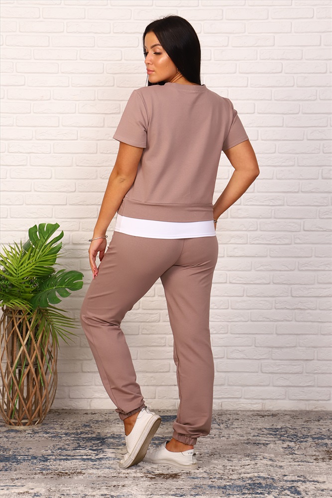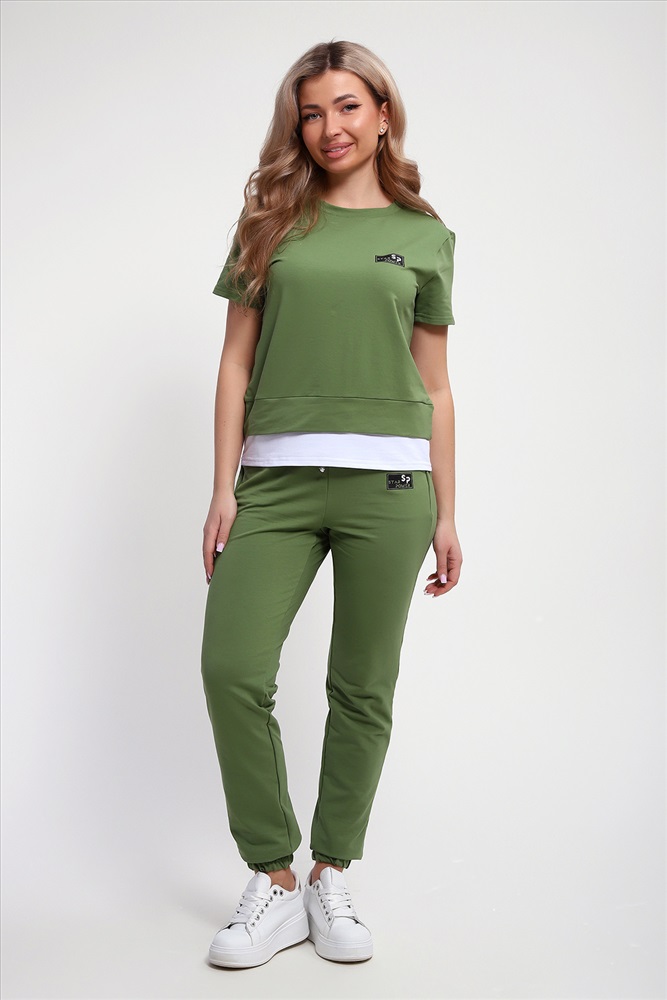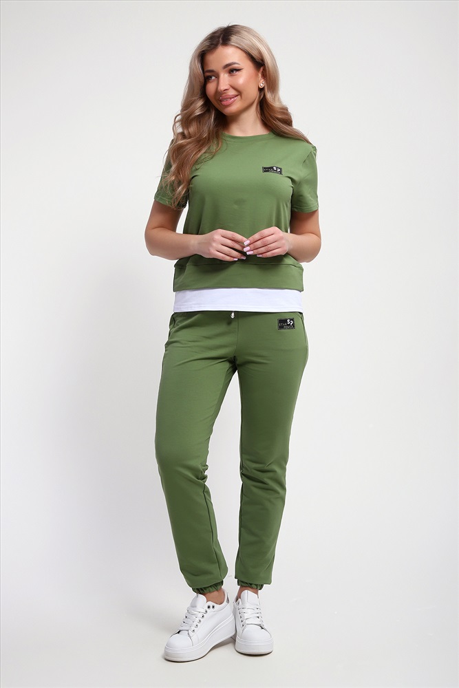 Состав: 73% хлопок, 22% п/э, 5% лайкра Модель: Костюм 5712 Тип товара: костюм с брюками Материал: футер 2-х нитка | футер 2-х нитка Бренд: Натали Суслова Карман: боковые Особенности: на резинке Отделка: с эмблемой | с карманами | со шнурком Посадка: средняя посадка Рейтинг: Рейтинг 4 и выше Рисунок: колорблок | однотонные Рукав: короткий рукав Сезонность: лето | осень | весна Стиль: повседневный Воротник: без воротника Застежка: без застежки Костюм женский трикотажный - футболка и брюки. Футболка укороченная с отделкой по низу контрастного цвета. Брюки с завязками и втачными боковыми карманами. На футболке и брюки небольшие отделочные печати. Таблица размеров и весаБрюки