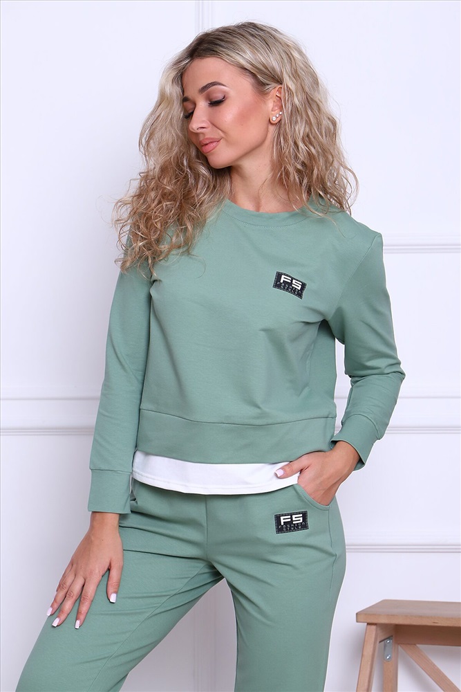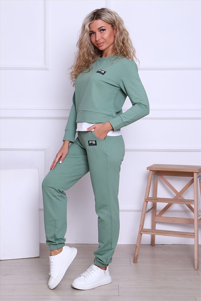 ID товара: 806558 Состав: 73% Хлопок, 22% Полиэстер, 5% Лайкра Сезон: Осень/Зима Длина: Полная Фасон: Спортивный Рукав: Длинные Крой брючин: Зауженный Тип карманов: С отрезным бочком Основная ткань: Хлопок | Футер 2-х нитка Стиль: Спортивный Страна бренда: Россия Страна производства: Россия Костюм женский трикотажный - футболка и брюки. Футболка с длинным рукавом, с отделкой по низу контрастного цвета. Брюки с завязками и втачными боковыми карманами. На футболке и брюках небольшие отделочные печати Комментарии к товару