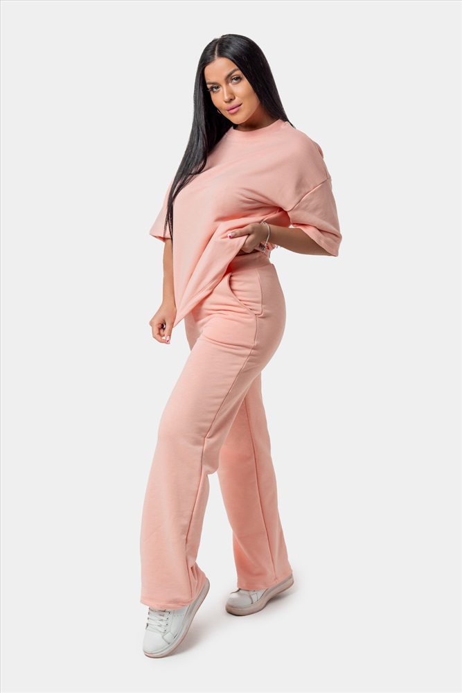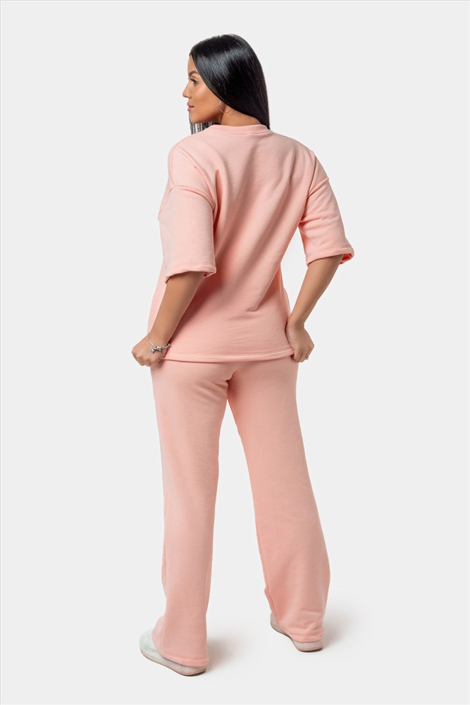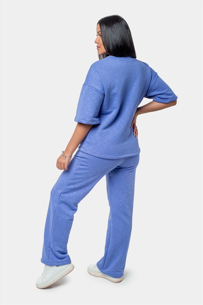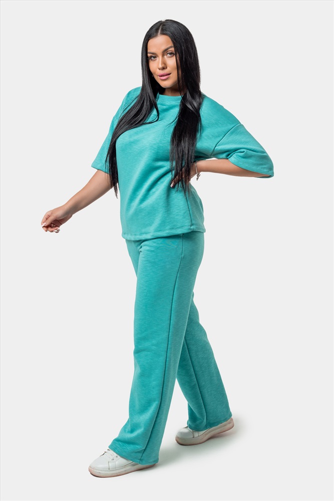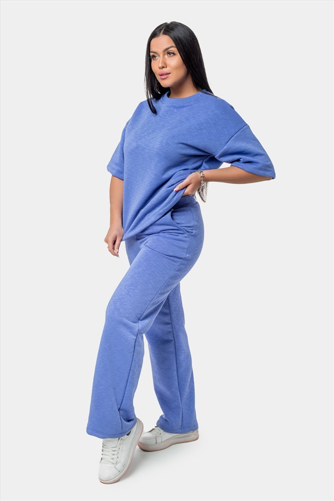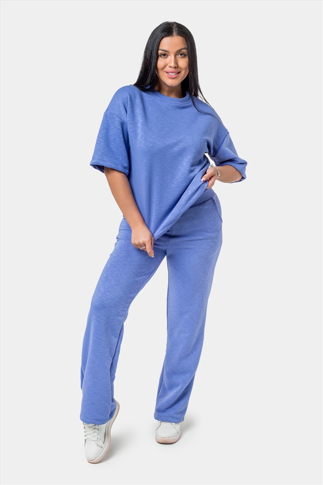 Застежка: без застежки Женский костюм с брюками и футболкой, выполненный из приятной плотной ткани. Отличный вариант для прогулок, встреч и просто домашнего использования. По отдельности вещи из комплекта можно комбинировать с другими элементами гардероба, к примеру, джинсами или коротким спортивным топом. Подойдет девушкам и женщинам разных возрастов, так как имеет классический свободный крой.