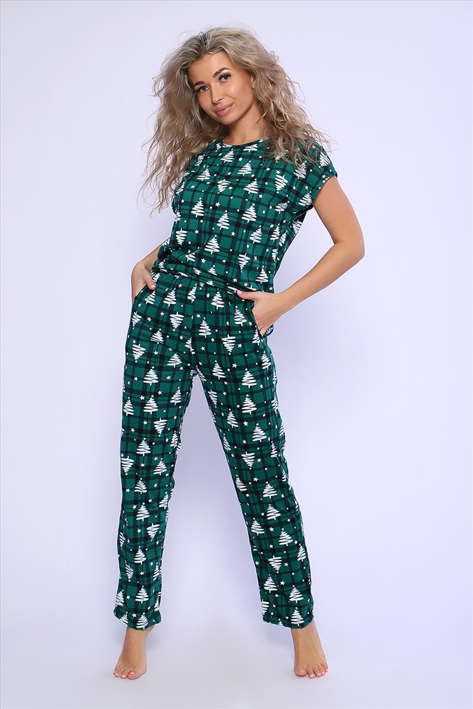 Застежка: без застежки Костюм состоит из футболки и брюк. Футболка свободная со спущенным плечом. Брюки прямые с карманами по бокам.
