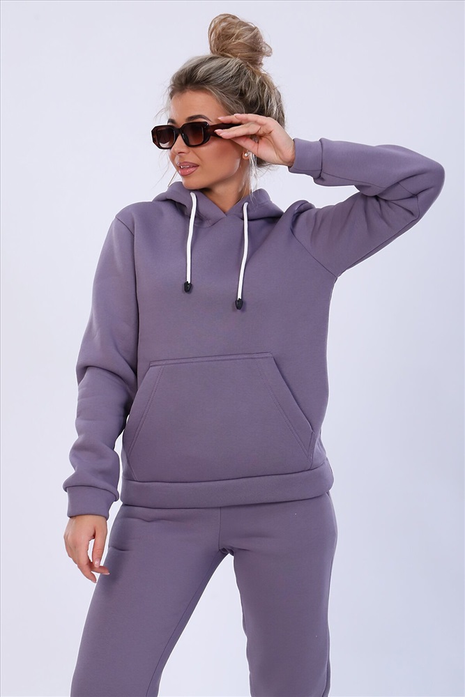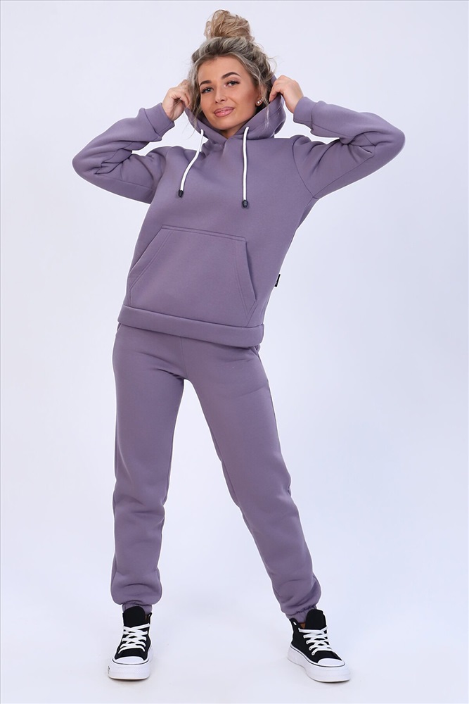 Страна производства: Россия Теплый женский костюм толстовка + брюки. Толстовка с капюшоном, на животе карманы, рукава и низ отделаны манжетами. Брюки с карманами, внизу с манжетами. Несколько вариантов расцветки. Размеры от 44 до 58.