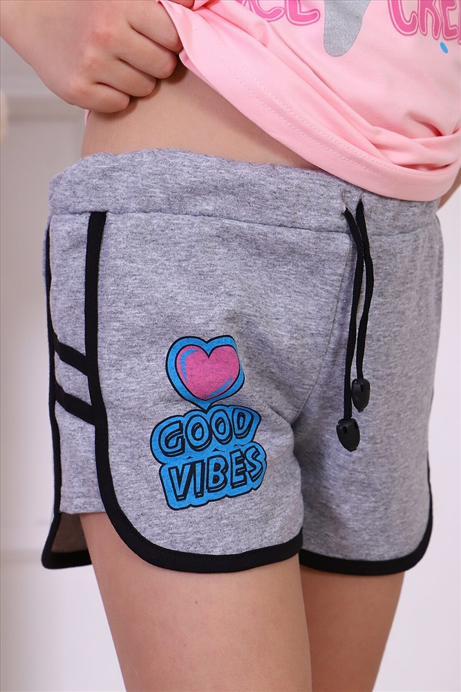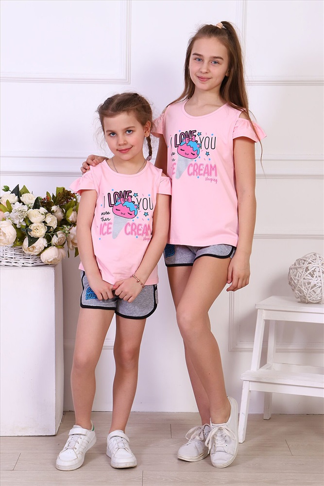 ID товара: 774512 Состав: 95% х/б, 5% лайкра; низ 74% х/б, 20% ПЭ, 6% лайк. Сезон: Весна/Лето Длина: Средняя Фасон: Прямой Рукав: Крылышки Вид застежки: Без застежки Крой брючин: Прямой Рисунок: Надпись Декоративные элементы: Принт Основная ткань: Хлопок | Кулирка с лайкрой пенье, футер 2-х нитка Стиль: Повседневный Страна бренда: Россия Страна производства: Россия Костюм состоит из шорт и майки. Шорты с лампасами и с печатью. Рукав с оборкой, горловина и пройма окантованы. Очень красивый и удобный Комментарии к товару