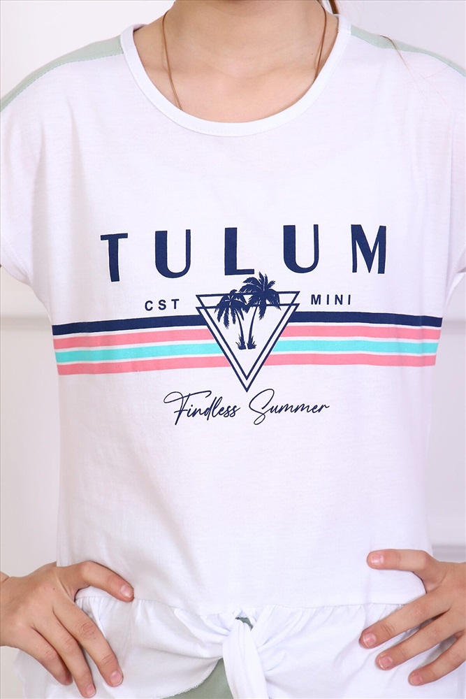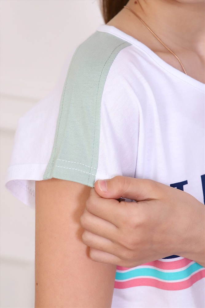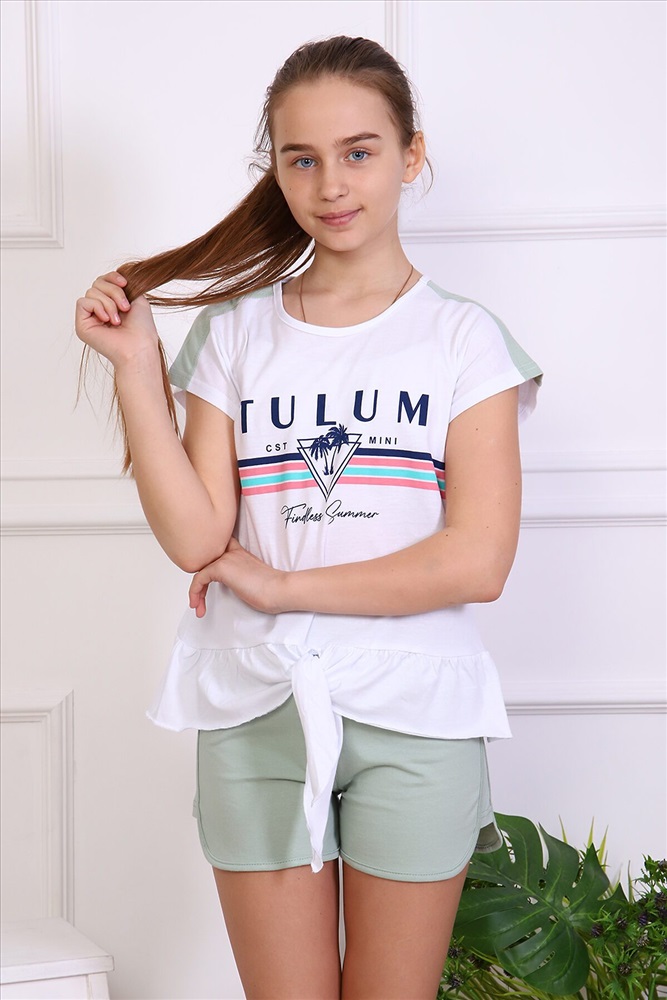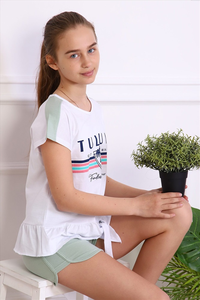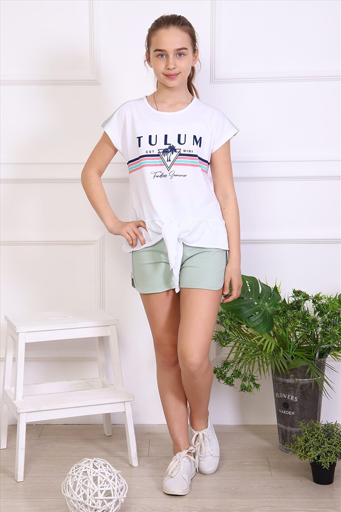 ID товара: 782269 Состав: 100% хлопок Сезон: Весна/Лето Длина: Средняя Фасон: Прямой Вид застежки: Без застежки Крой брючин: Прямой Рисунок: Надпись Декоративные элементы: Рюши Основная ткань: 100% хлопок | Кулирка Стиль: Повседневный Страна бренда: Россия Страна производства: Россия Комплект состоит из шорт и футболки. На футболке на плечах имеются цветные вставки, низ обработан рюшей. Шорты однотонные обработаны окантовкой. Пояс с резинкой. Комментарии к товару