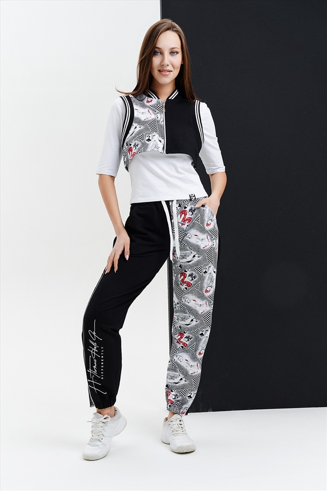 Состав: ХБ 72%, ПЭ 20%, эластан 8% и хлопок 95% лайкра 5% Модель: Костюм 67005 Тип товара: костюм с брюками Материал: футер с лайкрой 2-х нитка | кулирка с лайкрой | футер с лайкрой 2-х нитка | кулирка с лайкрой Бренд: Натали Суслова Карман: боковые Отделка: с карманами | с печатью | со шнурком Посадка: средняя посадка Рейтинг: Рейтинг 4 и выше Рисунок: колорблок | надпись | разное Рукав: без рукава | рукав 3/4 Сезонность: лето | осень | весна Силуэт: прямой Скидка: любая | от 10% и больше | от 30% и больше | от 50% и больше Стиль: молодежный | повседневный Воротник: воротник стойка Застежка: молния Молодежный костюм тройка, выполнен в технике COLOR BLOCKING, состоит из укороченного жилета на застежке- молнии, джоггеров со вставками из сетки и молниями в боковых швах с модным принтом на правой передней половинке брюк и белой трикотажной футболки декорированной шевроном на полочке. Оригинальный, модный и практичный костюм, который подойдет для встреч с друзьями и прогулок, для любителей активного отдыха. Таблица размеров и весаЖилет
