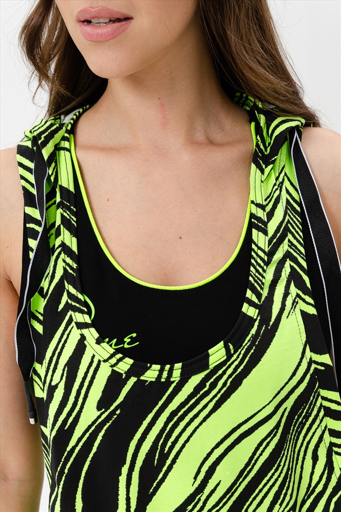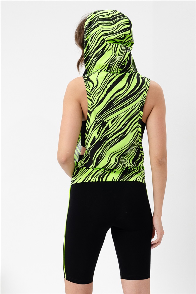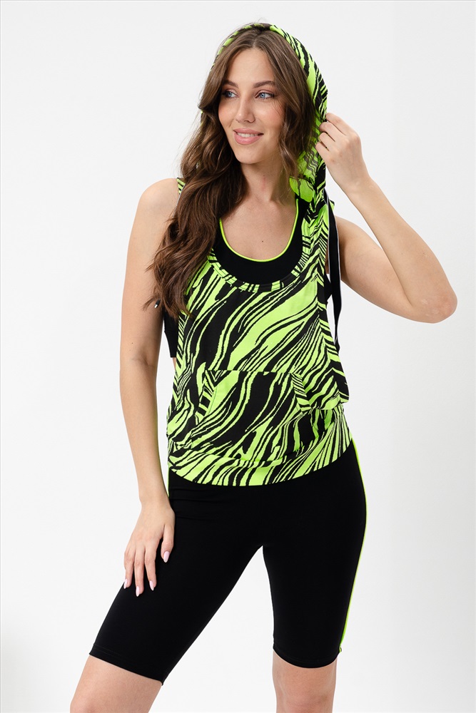 Застежка: без застежки Костюм спортивный женский - тройка, состоит из яркого худи с капюшоном, велосипедок на широком эластичном поясе и укороченного топа со стильным принтом. Подходит для активного отдыха и занятий спортом. Очень удобен для езды на велосипеде.