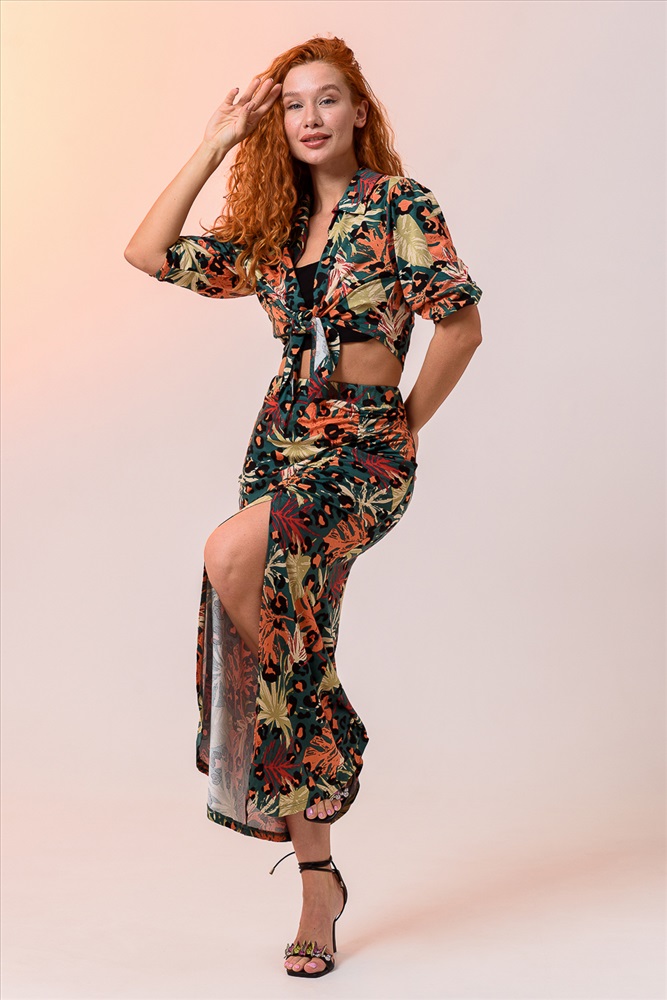 Состав: вискоза 92%, лайкра 8% Модель: Костюм 67110 Тип товара: костюм с юбкой Материал: вискоза | вискоза Бренд: Натали Суслова Длина: длинный Карман: без карманов Назначение: для пляжа Особенности: на резинке Посадка: высокая посадка Рисунок: цветы Рукав: рукав 3/4 Сезонность: лето | весна Силуэт: полуприлегающий Стиль: молодежный | пляжный | повседневный Воротник: рубашечный воротник Застежка: без застежки Комплект женский из 3-х изделий состоит из рубашки, топа, юбки. Выполнен из качественно эластичного мягкого материала хорошей растяжимости. Рубашка с отложным дублированным воротником, который держит форму, рукавами средней длины, дополнена укороченным топом на широких бретелях. Юбка длиной макси с высокой посадкой на талии и широким поясом, длинным разрезом и мягкой драпировкой. Длину разреза и драпировку вы можете регулировать с помощью тонкой эластичной резинки, а оставшейся конец петли завязать. Таблица размеров и весаюбка
