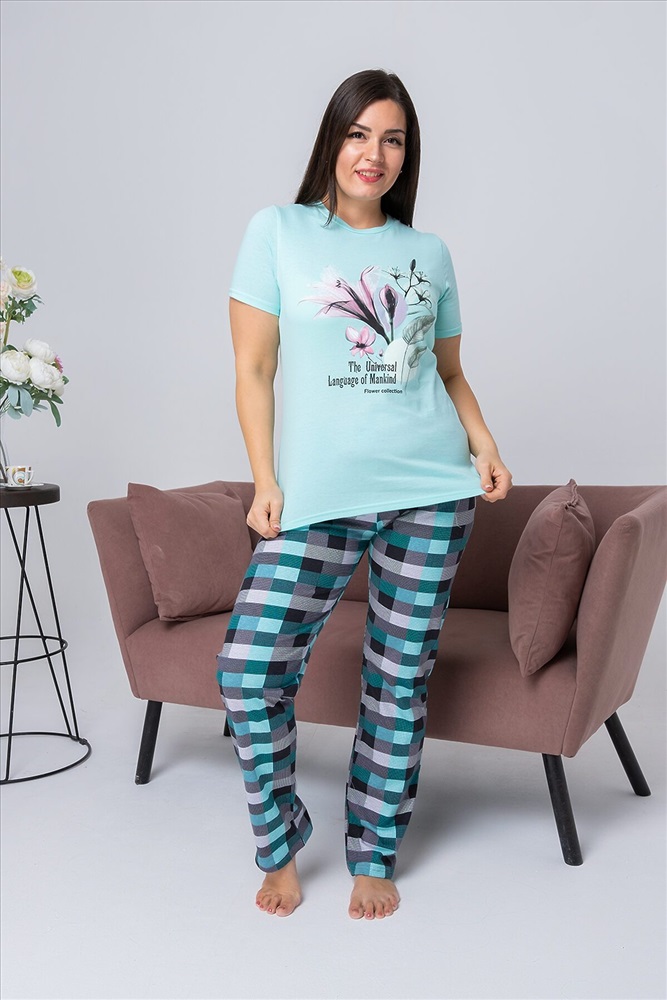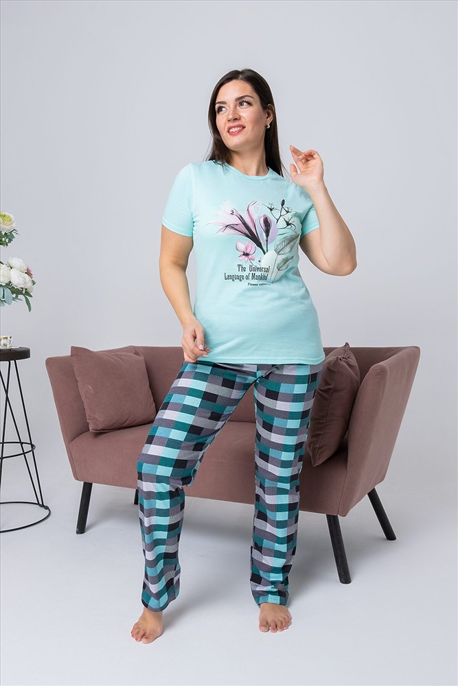 ID товара: 810715 Состав: 100% хлопок Сезон: Демисезон Длина: Полная Фасон: Прямой Рукав: Короткий Вид застежки: Без застежки Декоративные элементы: Принт Основная ткань: Хлопок | Кулирка Стиль: Повседневный Страна бренда: Россия Страна производства: Россия Костюм женский состоит из футболки с коротким рукавом из ткани кулирка гладь, на полочке красивый принт, и брюк из ткани кулирка, принт - клетка. Костюм для дома, отдыха, комфортный, удобный, не меняет цвет после стирки. Комментарии к товару
