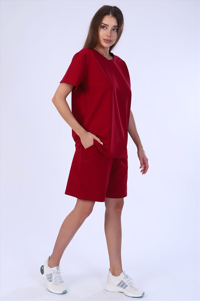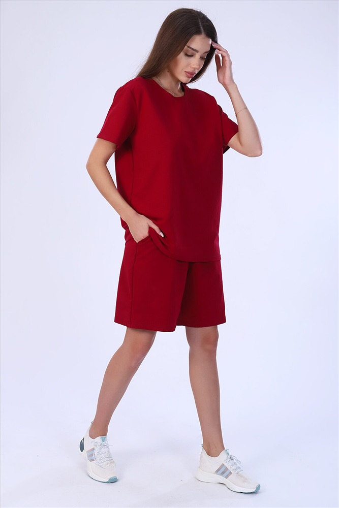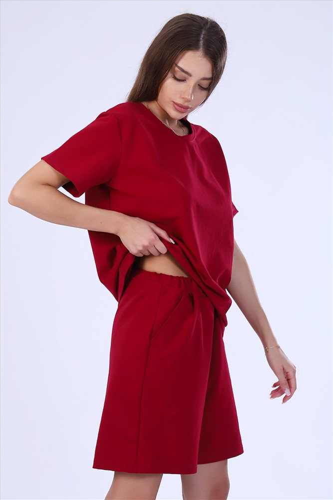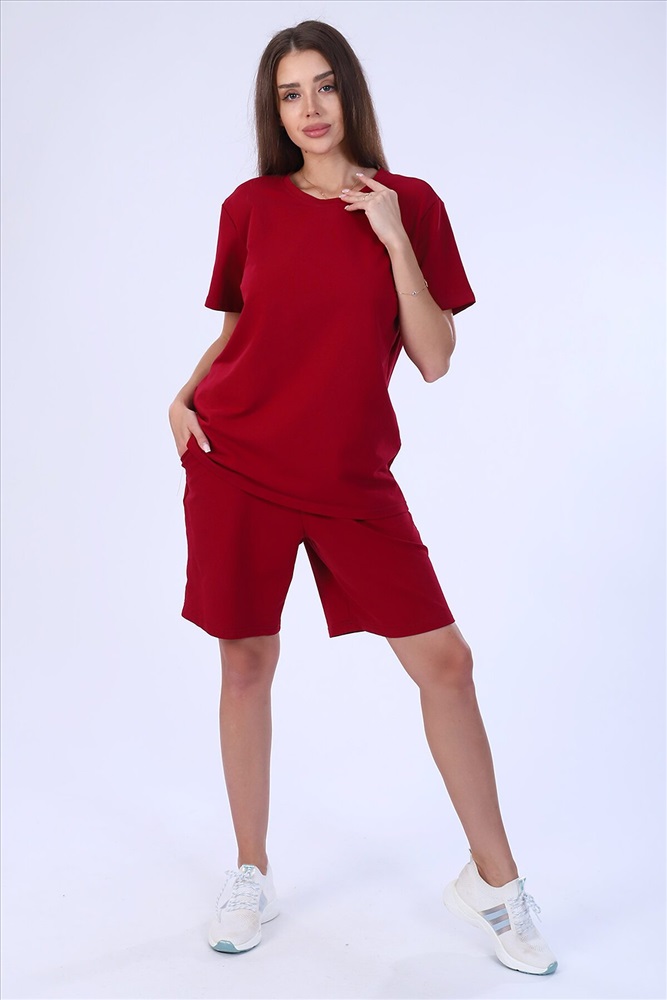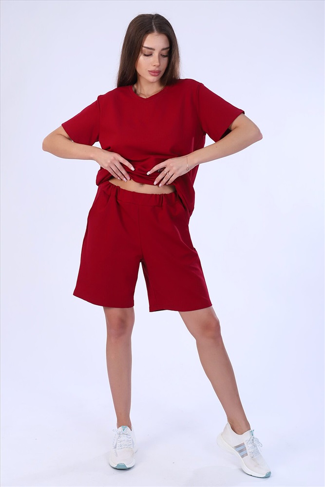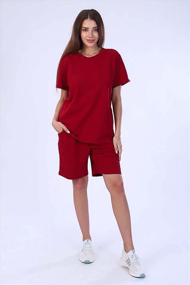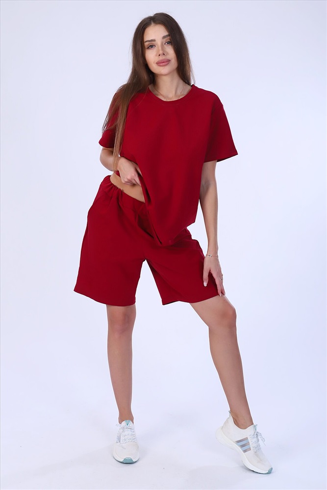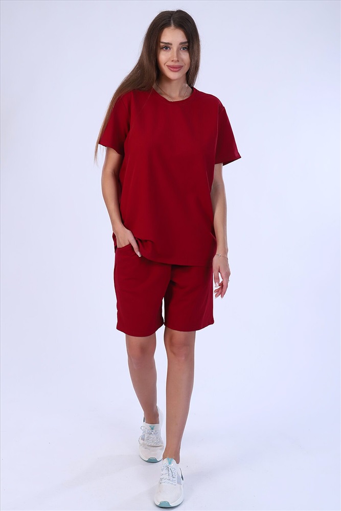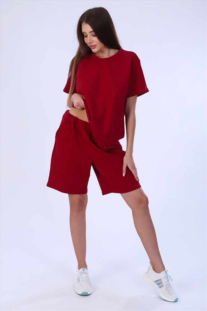Костюм женский из футера 2-х нитки. Костюм состоит из шорт и футболки. Шорты свободного покроя с карманами. Футболка свободной, прекрасный вариант как для прогулки, так и для повседневного. Рукав короткие. Костюм подходит для дома и отдыха.