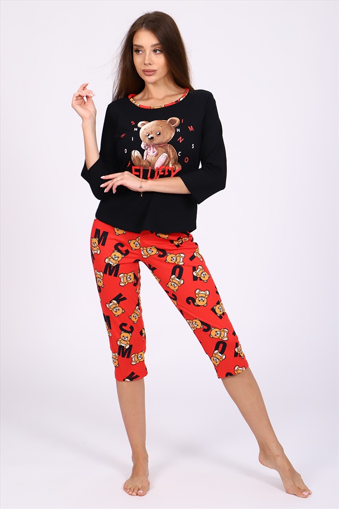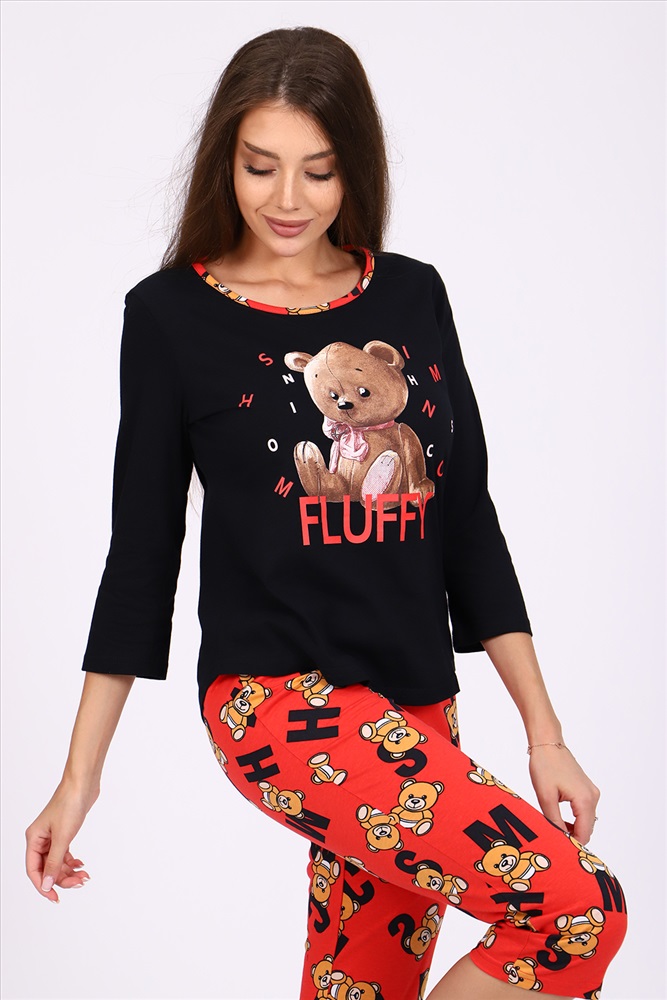 Состав: 100% хлопок Модель: Костюм 71021 Тип товара: костюм с бриджами Материал: кулирка | кулирка Бренд: Натали Суслова Карман: без карманов Особенности: на резинке Отделка: с печатью Посадка: высокая посадка Рисунок: надпись Рукав: рукав 3/4 Сезонность: лето | осень | весна | зима Силуэт: полуприлегающий Скидка: любая | от 10% и больше Стиль: молодежный Воротник: без воротника Застежка: без застежки Женский молодежный костюм-пижама, состоящий из футболки с удлиненным втачным рукавом, округлой горловиной, отделанной обтачкой из ткани бридж и закругленным низом и бридж на резинке на талии шириной в 3 см. На груди печать в виде маленького медвежонка и надписи, на бриджах - принт по ткани также в виде медвежат. Пижама сшита из трикотажного полотна, 100% хлопок (кулирка). Удобная, мягкая, приятная к телу, не стесняет движения. Яркие, стойкие цвета ткани соответствуют модным тенденциям. Пижама - незаменимый предмет гардероба каждой женщины. Прекрасно подходит для сна и отдыха, а также для ношения, как домашний костюм, для пижамных вечеринок. Отличный подарок для девочек, юных девушек и женщин. Таблица размеров и весафутболка