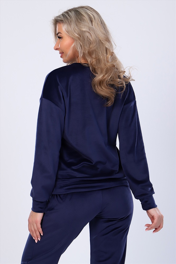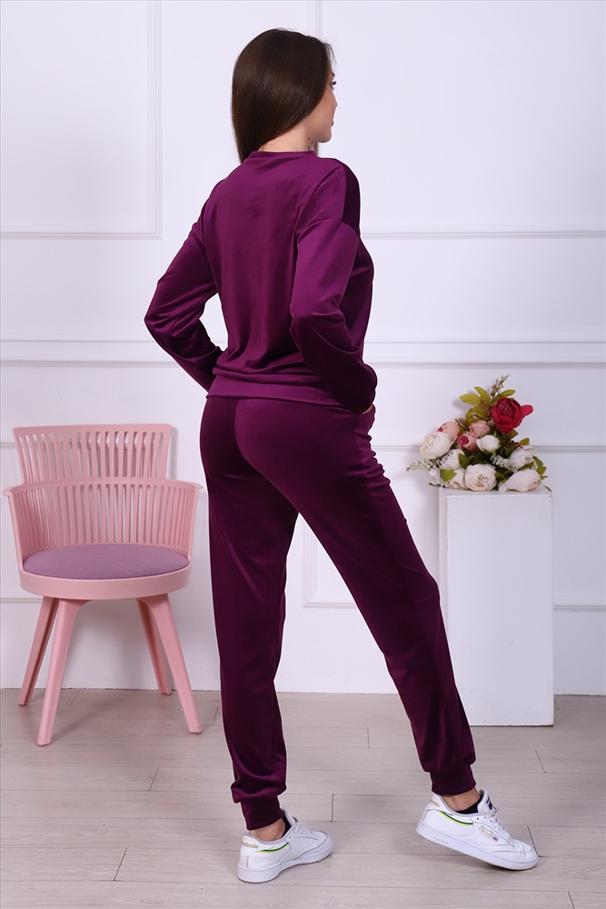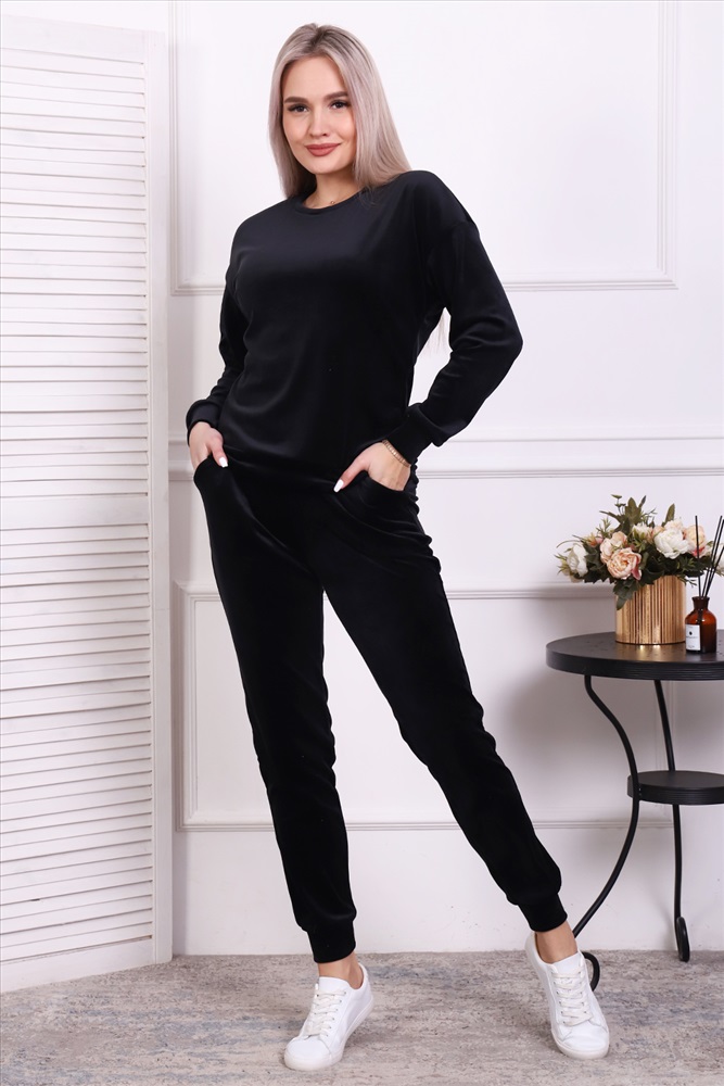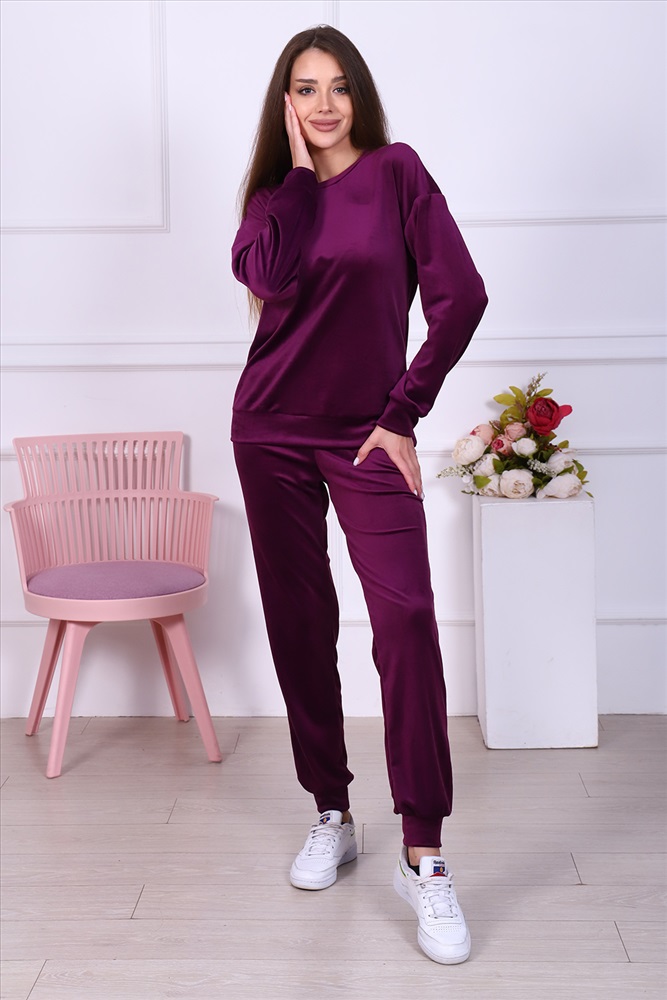 Женский домашний костюм, состоящий из джемпера с длинным рукавом и брюк. Брюки с карманами в боковых швах со скошенным входом для удобства, с широким притачным поясом на резинке, отделан декоративной отстрочкой. Низ брюк на притачной манжете из основной ткани. Джемпер свободного покроя с округлой горловиной чуть зауженный внизу манжетой за счет небольшой сборки. Рукав втачной, низ рукава на притачной манжете шириной 6 см. Костюм выполнен из нежной на ощупь бархатной ткани - иконвелюра, который переливается на свету и очень приятен на ощупь. Изделие не мнется, не требует глажки, что очень удобно в использовании. Можно носить дома, как домашний комплект, как пижаму для сна, а также на выход, как костюм для прогулок в холодное время года, как спортивный костюм, на дачу, для школы и т. д. Большой выбор нежных и насыщенных расцветок на любой вкус! Отличный подарок самым любимым!