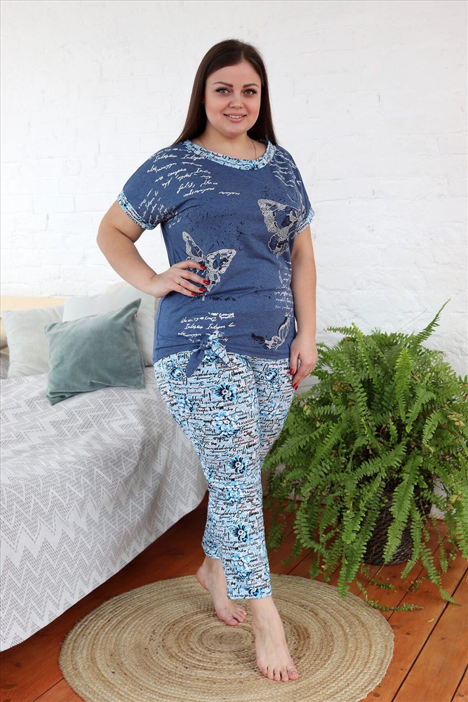 ID товара: 760104 Состав: Хлопок 70%, Полиэстер 30% Сезон: Демисезон Длина: Средняя Фасон: Повседневный Рукав: Короткие Декоративные элементы: Принт Основная ткань: Хлопок | Кулирка Стиль: Повседневный Страна бренда: Россия Страна производства: Россия Костюм женский туника и брюки капри. Рукав цельнокроеный, короткий. Туника из однотонной ткани, на полочке принт, брюки из отделочной ткани. Вырез горловины - лодочка. Ширина туники по бедрам регулируется завязками. Горловина, низ рукава обработаны широкой окантовкой из отделочной ткани. Брюки свободные, слегка зауженные к низу, с внутренними карманами. Низ брюк заканчивается манжетой. Комментарии к товару