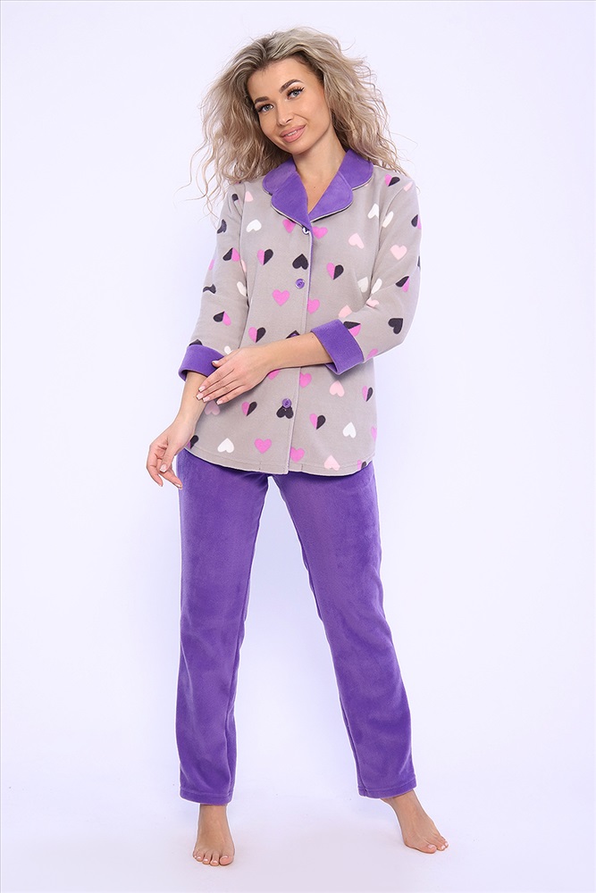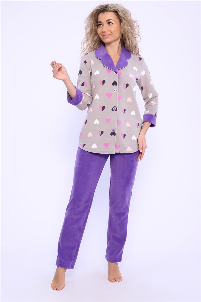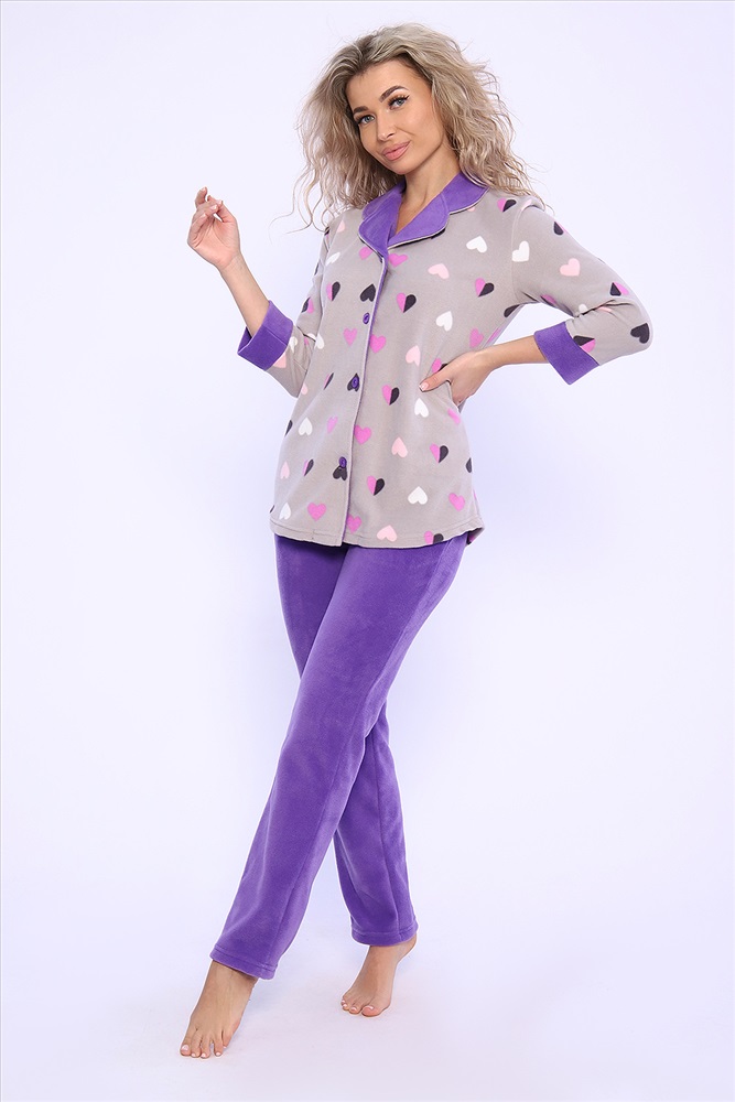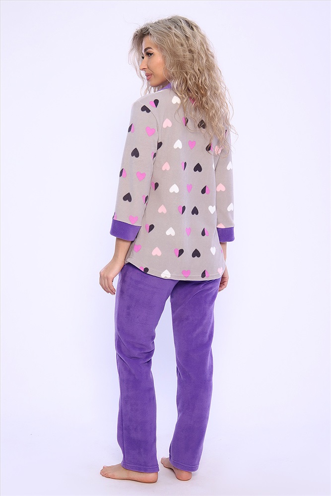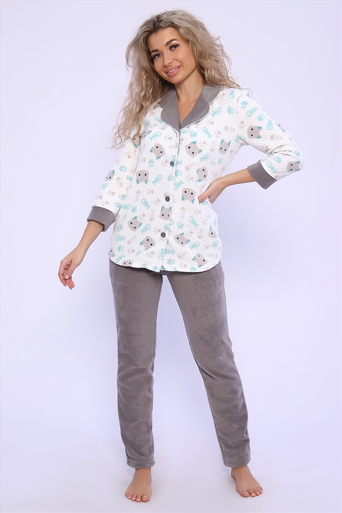 Состав: 100% п/э Модель: Костюм 71084 Тип товара: костюм с брюками Материал: флис | флис Бренд: Натали Суслова Карман: боковые Назначение: для дома НДС: 5% Особенности: на резинке Отделка: с карманами | с манжетами Посадка: высокая посадка Рисунок: разное | зверюшки Рукав: рукав 3/4 Сезонность: лето | осень | весна | зима Силуэт: прямой Стиль: домашний | молодежный Воротник: отложной воротник Застежка: пуговицы Домашний женский костюм из мягкого, теплого флиса. Кофта полуприлегающего силуэта, застегивается на петли и пуговицы. Длиной до бедер с фигурной линией низа. Рукав втачной, длиной 3/4 с манжетом из отделочной ткани. Воротник пиджачного типа с закругленными углами, из отделочной ткани. Борта, воротник и лацканы отстрочены. Домашние брюки прямого кроя с вместительными карманами в боковом шве, комфортный пояс на резинке, располагается на линии талии, длина брюк ниже щиколотки. Таблица размеров и весажакет