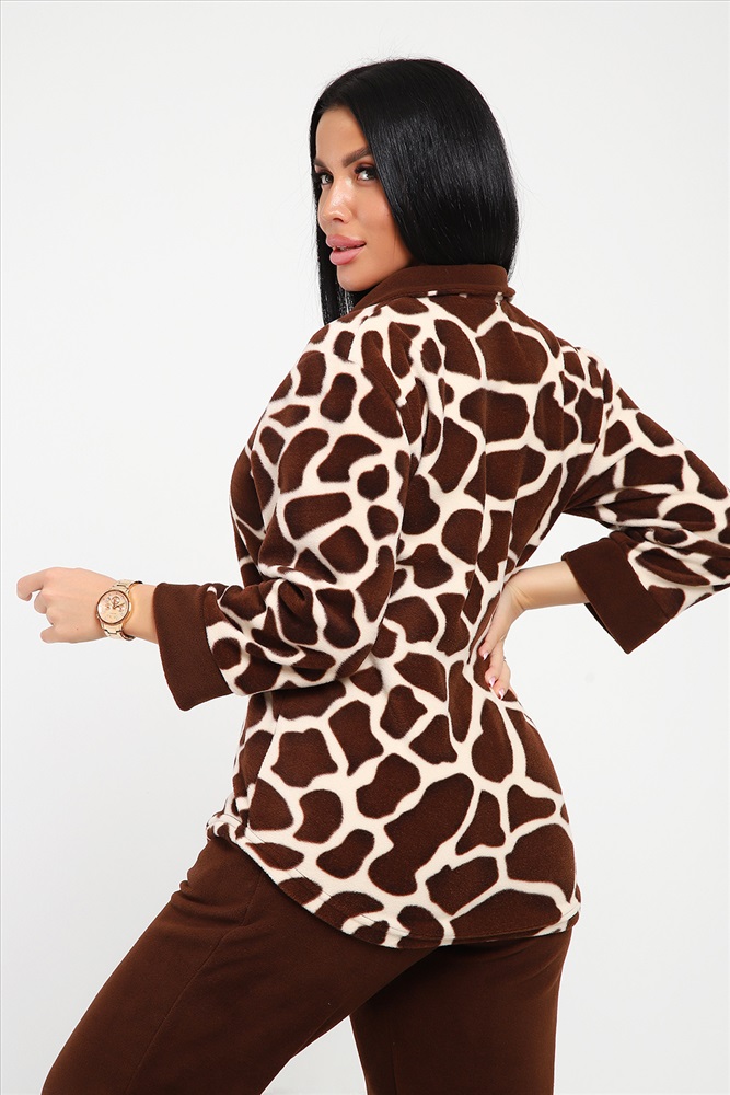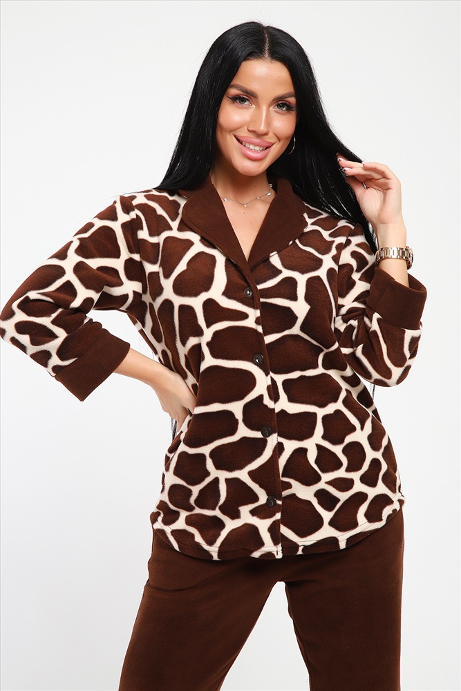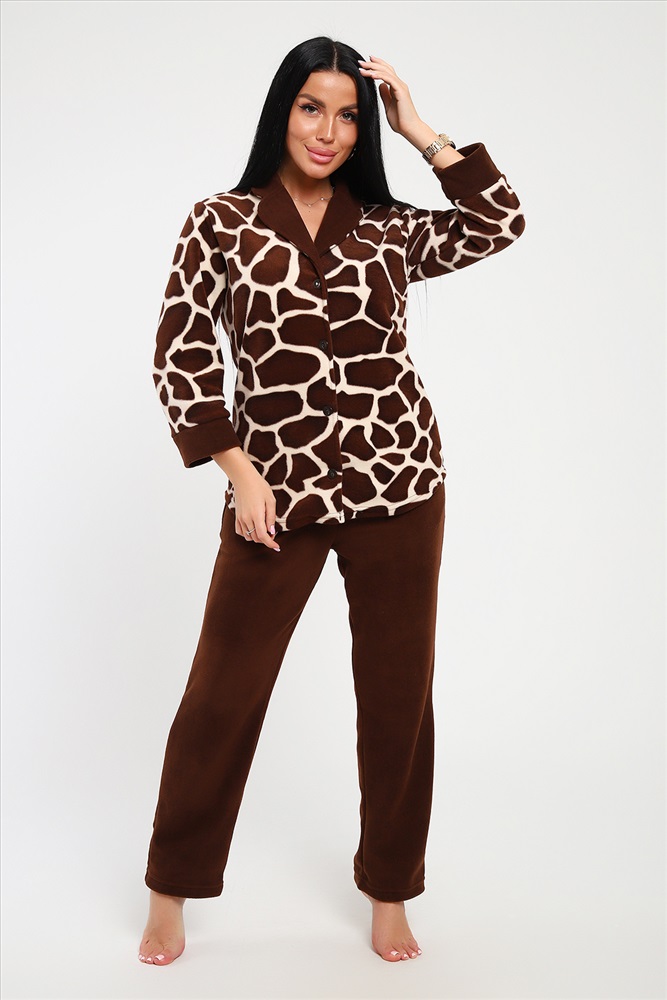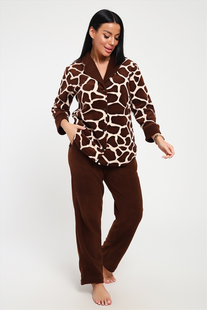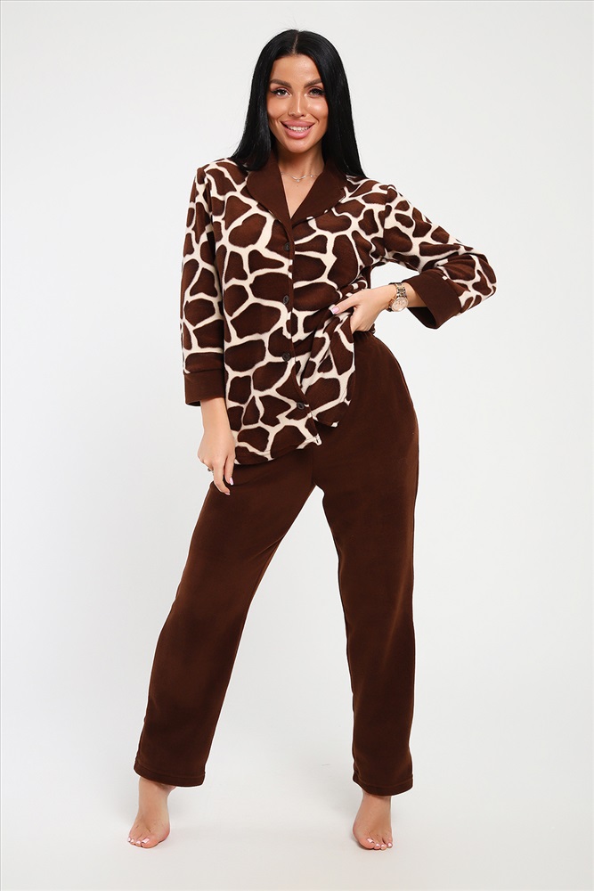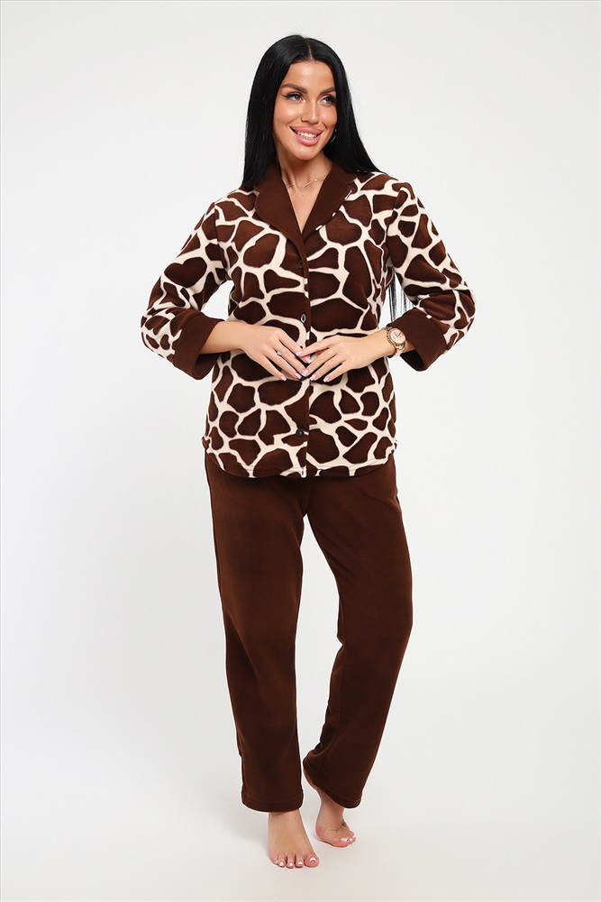 Застежка: пуговицы Домашний женский костюм из мягкого, теплого флиса . Кофта полуприлегающего силуэта, застегивается на петли и пуговицы. Длиной до бедер с фигурной линией низа. Рукав втачной, длиной 3/4 с манжетом из отделочной ткани. Воротник пиджачного типа с закругленными углами, из отделочной ткани. Борта, воротник и лацканы отстрочены. Домашние брюки прямого кроя с вместительными карманами в боковом шве, комфортный пояс на резинке, располагается на линии талии брюк ниже щиколотки. В таблице замеров готовых изделий в столбце Объем бедер, см указан Обхват низа кофты. По запросу вышлем Обхват манжеты рукава На модели представлен 46 размер. Параметры модели 165 см, 97-71-101