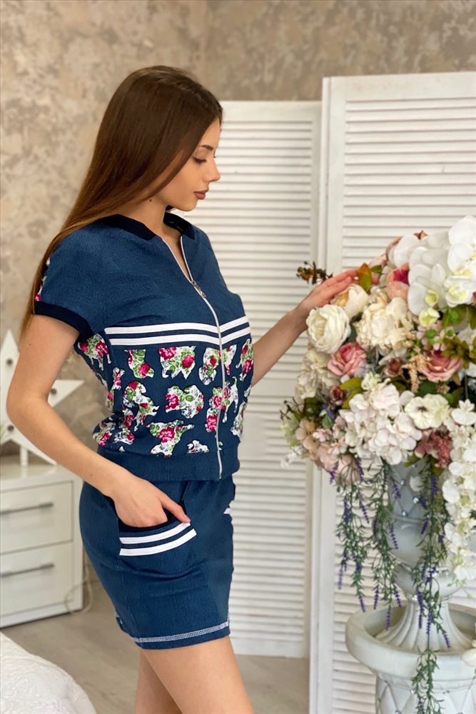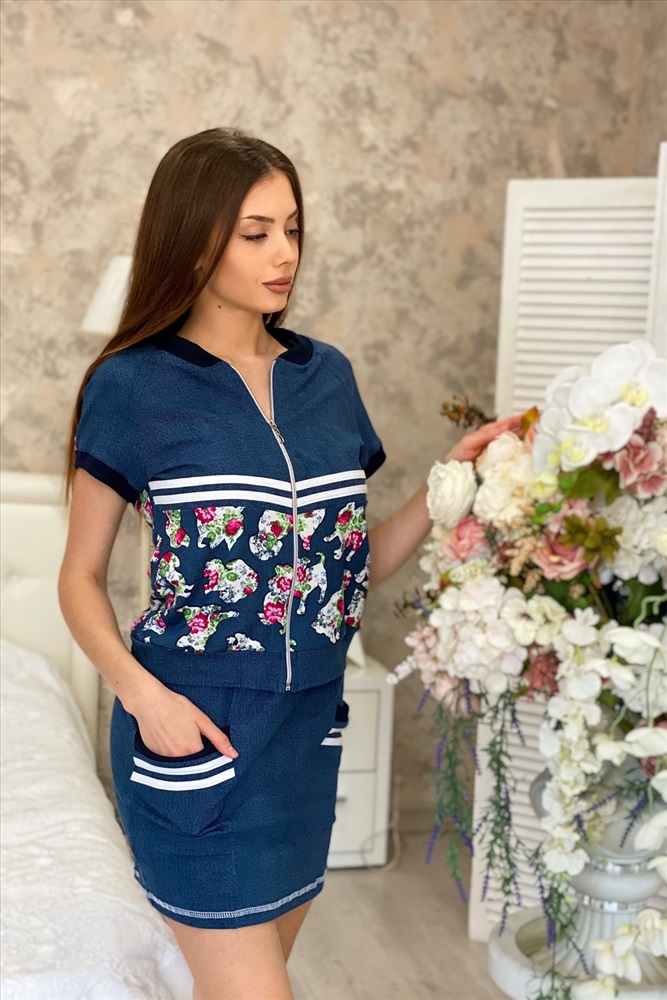 Застежка: молния Комплект в спортивном стиле состоит из бомбера и юбки. Юбка полуприлегающего силуэта, длиной выше колена, с карманами на уровне середины бедра, на эластичном поясе. Верх кармана обработан эластичной обтачкой. Куртка-бомбер полуприлегающего силуэта, длиной немного ниже талии, с округлой горловиной. На полочке расположены симметричные кокетки. Рукав реглан, короткий, на эластичном манжете. Горловина обработана эластичной обтачкой.