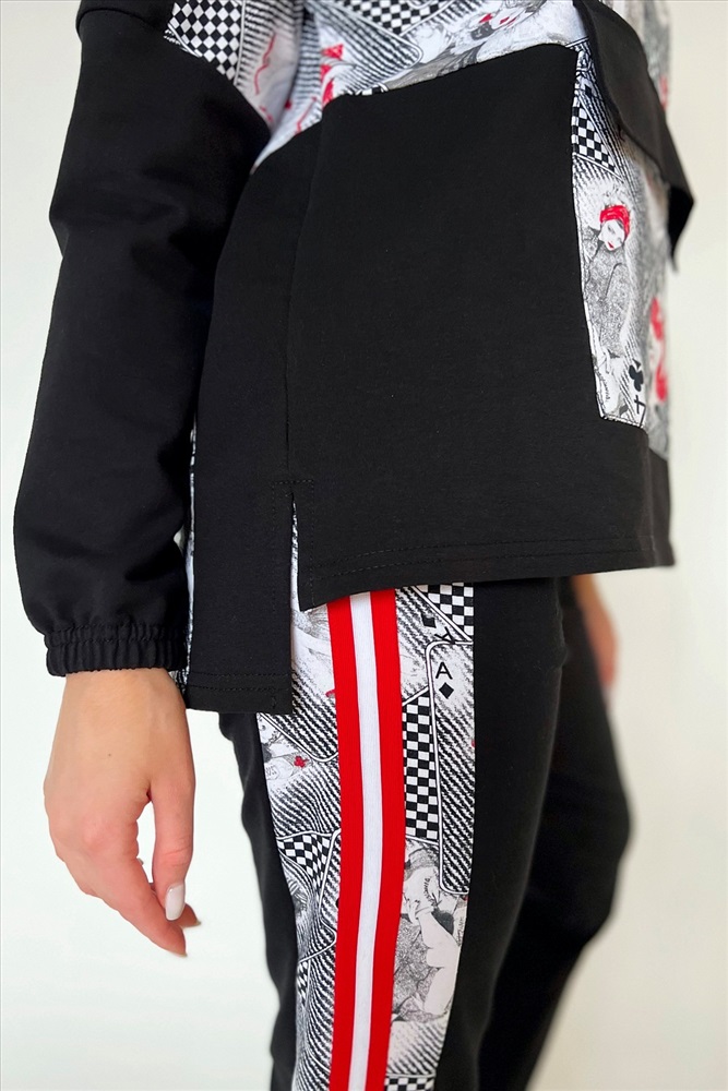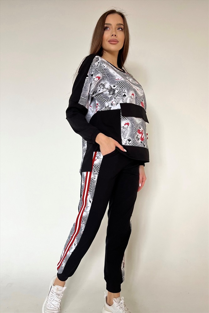 Застежка: без застежки Костюм молодежный. Толстовка с карманом, брюки внизу на манжетах.