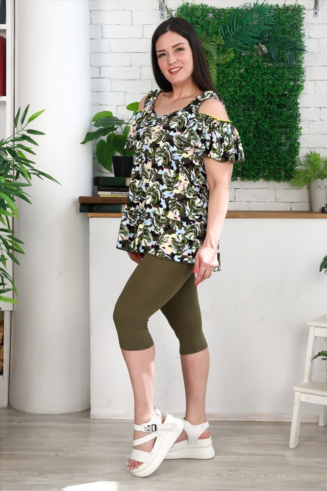 Состав: хлопок 100%; вискоза 92%, лайкра 8% Модель: Костюм 7314 Тип товара: костюм с бриджами Материал: кулирка | вискоза | кулирка | вискоза Бренд: Натали Суслова Карман: без карманов Назначение: для дачи | для дома Особенности: на резинке Отделка: с воланами Посадка: высокая посадка Рисунок: цветы Рукав: короткий рукав Сезонность: лето | осень | весна | зима Силуэт: свободный Скидка: любая | от 10% и больше Стиль: домашний | повседневный Воротник: без воротника Застежка: без застежки Костюм женский состоит из топа и вискозных бриджей. Топ на эластичных бретелях. Эффектный рукав крылышко, поверху обработан эластичной кружевной тесьмой. Таблица размеров и весатоп
