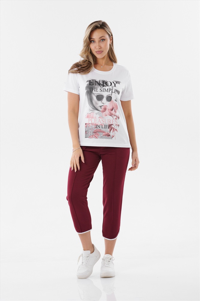 Застежка: без застежки Костюм женский это стильный и идеальный предмет гардероба, идеально подходящий для дома и отдыха на любой период. Комплект состоит из футболки с красочным принтом и бриджи в контрастном цвете. В составе ткани хлопок, лайкра и полиэстер. Хлопковый материал очень комфортный и лёгкий в носке. Бриджи с удобной посадкой придадут вашему образу стильный и модный вид. Базовый современный костюмчик популярный повседневный выбор на каждый день: на работу, для прогулок, праздников и на дачу. Универсальный стиль позволит вам создавать разнообразные образы, подходящие для любого события.