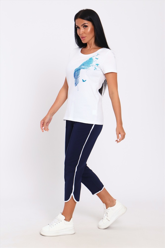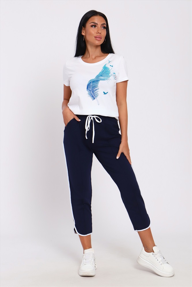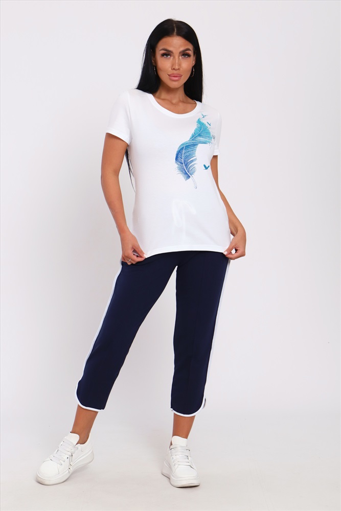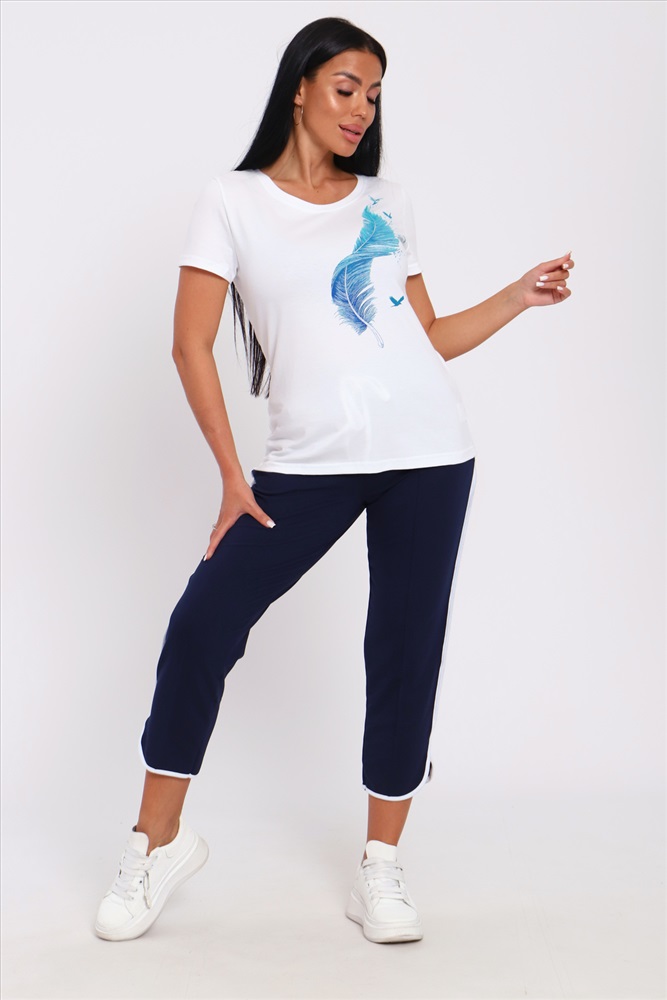 Застежка: без застежки Костюм женский это стильный и идеальный предмет гардероба ,идеально подходящий для дома и отдыха на любой период :весенний ,осенний, летний и зимний. Комплект состоит из футболки с красочным принтом и бриджи в контрастном цвете. В составе ткани хлопок , лайкра и полиэстер. Хлопковый материал очень комфортный и лёгкий в носке . Бриджи с удобной посадкой придадут вашему образу стильный и модный вид . Базовый современный костюмчик популярный повседневный выбор на каждый день: на работу , для прогулок , праздников и на дачу. Универсальный стиль позволит вам создавать разнообразные образы , подходящие для любого события.