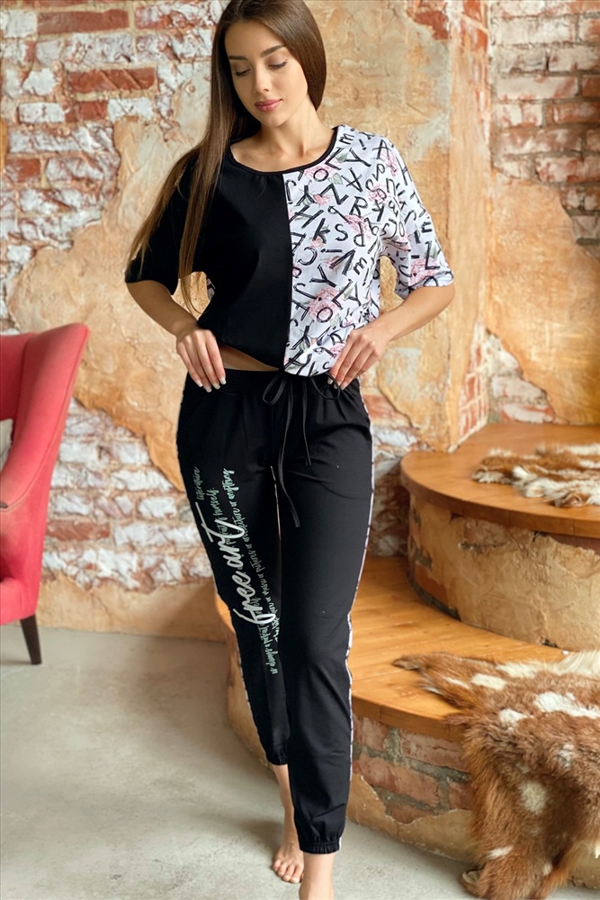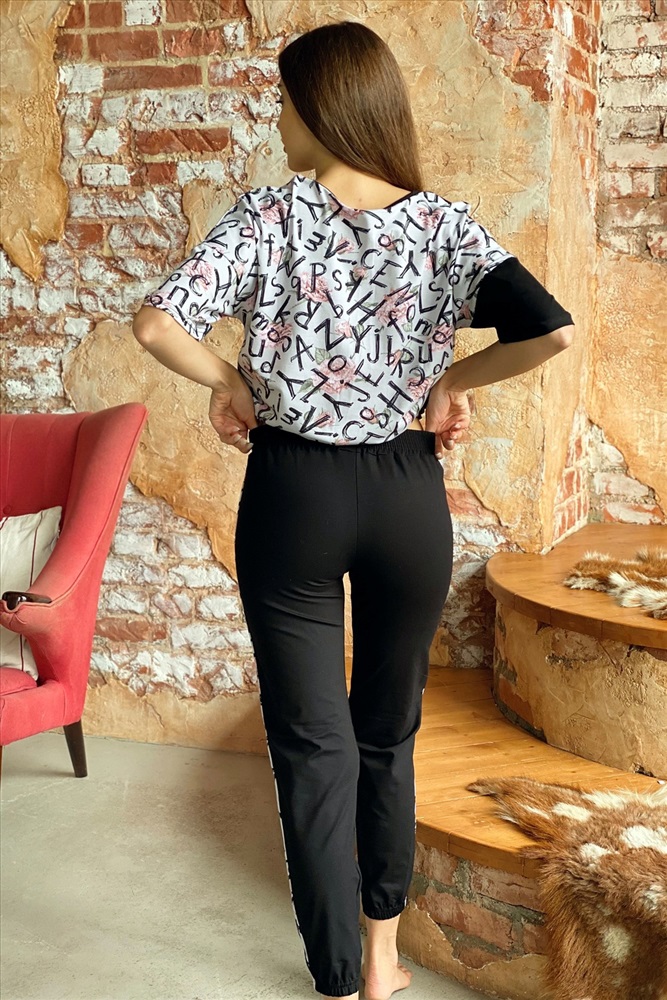 Состав: хлопок 95%, лайкра 5%; вискоза 92%, лайкра 8% Модель: Костюм 8140 Тип товара: костюм с брюками Материал: кулирка с лайкрой | вискоза | кулирка с лайкрой | вискоза Бренд: Натали Суслова Карман: боковые Назначение: для дачи | для дома Особенности: на резинке Отделка: с карманами | с лампасами | со шнурком Посадка: средняя посадка Рейтинг: Рейтинг 4 и выше Рисунок: колорблок | надпись | цветы Рукав: короткий рукав Сезонность: лето | осень | весна | зима Силуэт: прямой Скидка: любая | от 10% и больше Стиль: домашний Воротник: без воротника Застежка: без застежки Костюм состоит из футболки и брюк. Футболка прямая, с округлой горловиной. Половина полочки выполнена из отделочного полотна. По низу обработана кулиса со шнуром-стяжкой. Шнур и горловина обработаны бейкой из отделочного полотна. Брюки выполнены из отделочного полотна. Брюки свободные, длинные, с карманами, на эластичном поясе, с резинкой по низу. Вдоль боковых швов расположен лампас из основного полотна. Таблица размеров и весафутболка