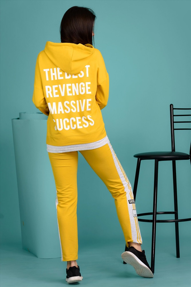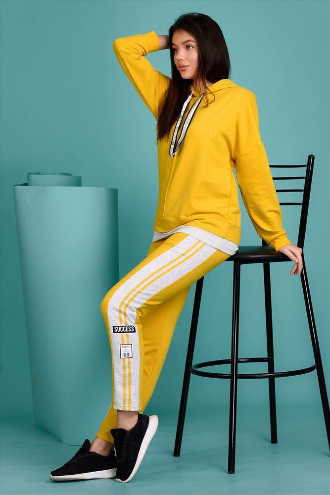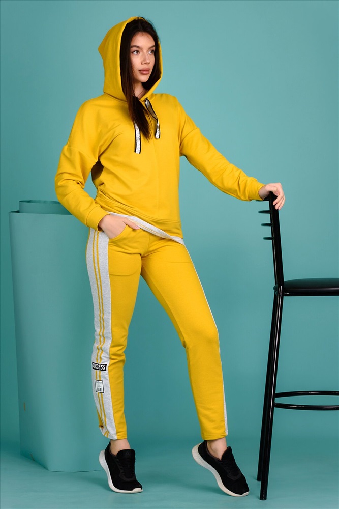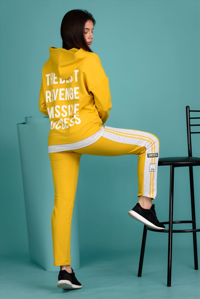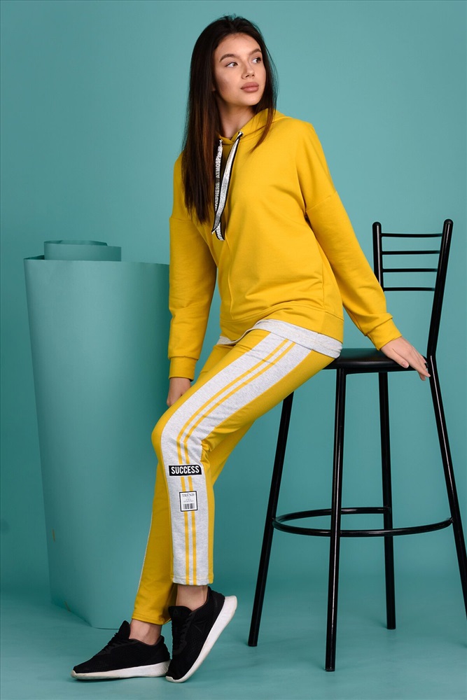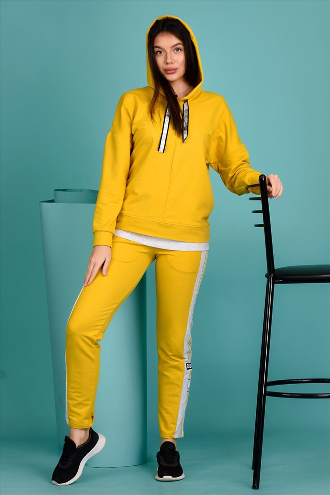 ID товара: 699652 Состав: Хлопок 72%, Полиэстер 20%, Эластан 8% Сезон: Весна/Лето Длина: Средняя Фасон: Повседневный Рукав: Длинные Вид застежки: Без застежки Крой брючин: Прямой Рисунок: Надпись Тип карманов: Втачные Декоративные элементы: С капюшоном Основная ткань: Хлопок | Футер с лайкрой 2-х нитка Стиль: Спортивный Страна бренда: Россия Страна производства: Россия Костюм состоит из толстовки и брюк. Толстовка прямая, свободная, с капюшоном, с длинным рукавом на манжете. Низ полочки и спинки завершен поясом. Брюки с карманами, на поясе. Вдоль боковых швов расположены лампасы из отделочного полотна. Комментарии к товару