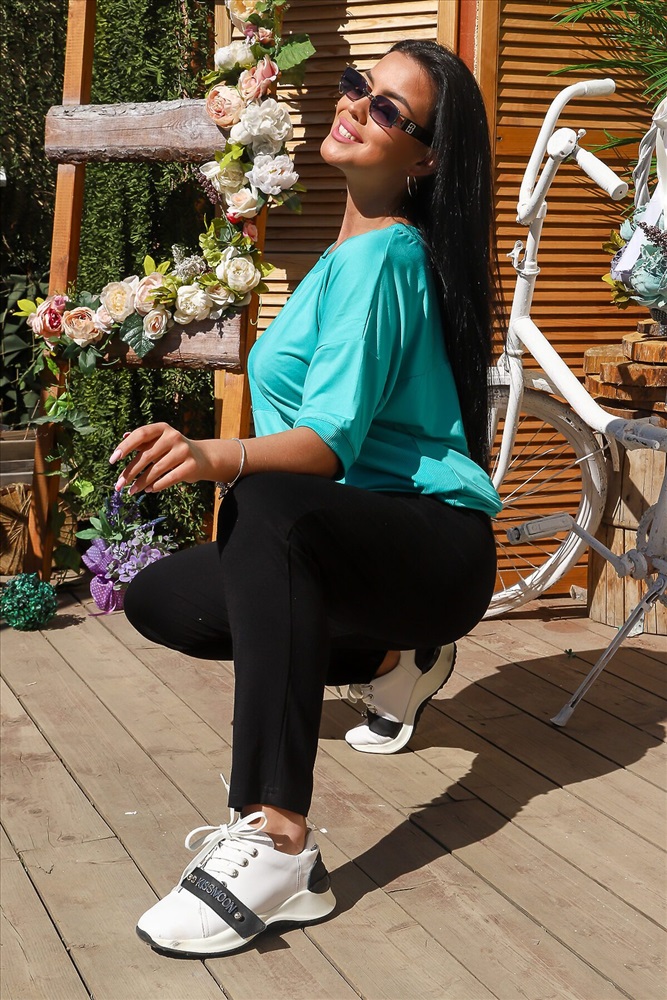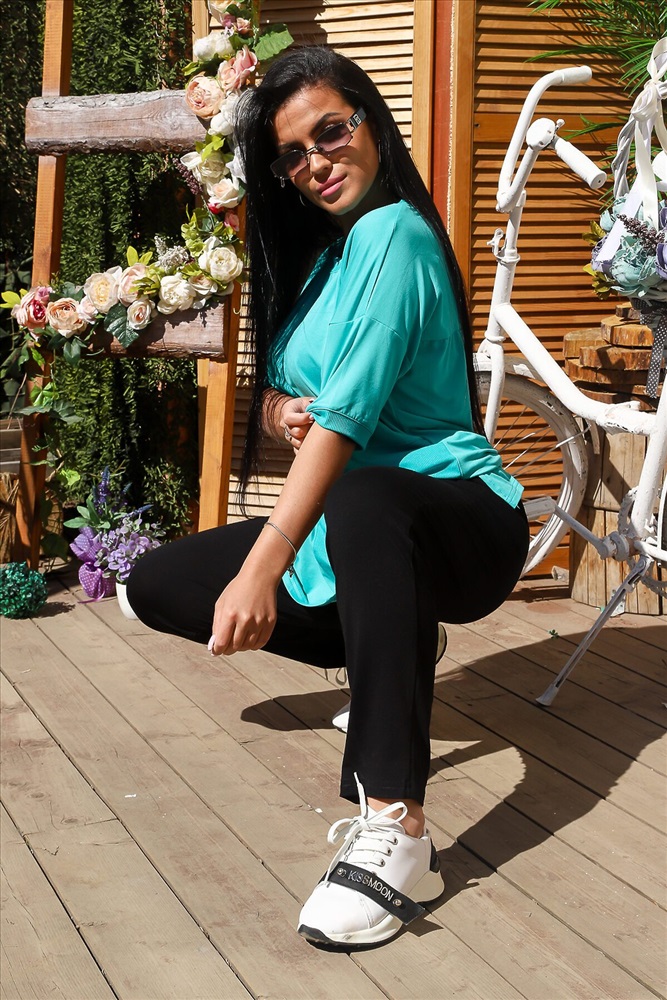 ID товара: 773128 Состав: Вискоза 92%, лайкра 8% Сезон: Весна/Лето Длина: Полная Фасон: Оверсайз Рукав: До локтя Вид застежки: Без застежки Крой брючин: Облегающий Рисунок: бабочки Тип карманов: С отрезным бочком Основная ткань: Вискоза | Вискоза, вискоза браш Стиль: Спортивный Страна бренда: Россия Страна производства: Россия Костюм состоит из футболки и брюк. Футболка прямого силуэта, с округлой горловиной, с удлиненной спинкой, с разрезами в нижней части боковых швов. На полочке расположены вставки из отделочного полотна. Спинка с кокеткой. Рукав короткий, обработанный эластичным манжетом. Горловина обработана эластичной обтачкой. Брюки на поясе, с боковыми карманами. В верхней части передних половинок по шву притачивания пояса расположены складки. На моделях 48 и 52 размеры Комментарии к товару