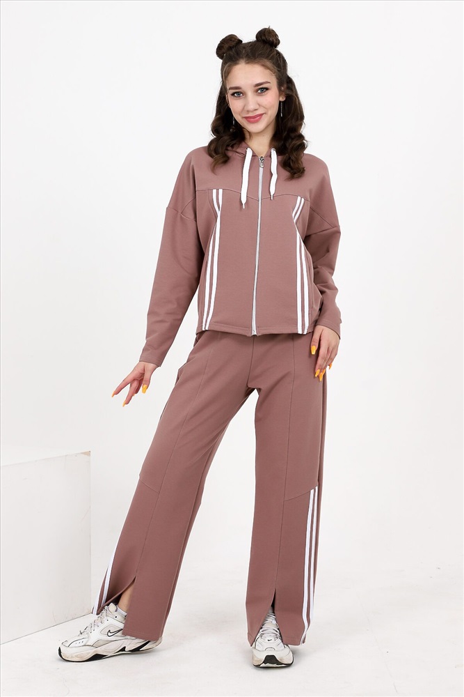 ID товара: 807281 Состав: Хлопок 72%, Полиэстер 20%, Лайкра 8% Сезон: Осень/Зима Длина: Полная Фасон: Прямой Рукав: Длинные Вид застежки: Молния Крой брючин: Широкий Тип карманов: С отрезным бочком Декоративные элементы: Разрезы Основная ткань: Хлопок | Футер с лайкрой 2-х нитка Стиль: Спортивный Страна бренда: Россия Страна производства: Россия Костюм состоит из толстовки и брюк. Толстовка прямая, свободная, с капюшоном, на молнии. Полочка с кокетками и вертикальными рельефами. В рельефных швах обработаны карманы. Рукав длинный. Низ спинки обработан поясом. Брюки свободные, прямые, с боковыми карманами, на поясе. В нижней части передних половинок брюк обработаны разрезы. Комментарии к товару
