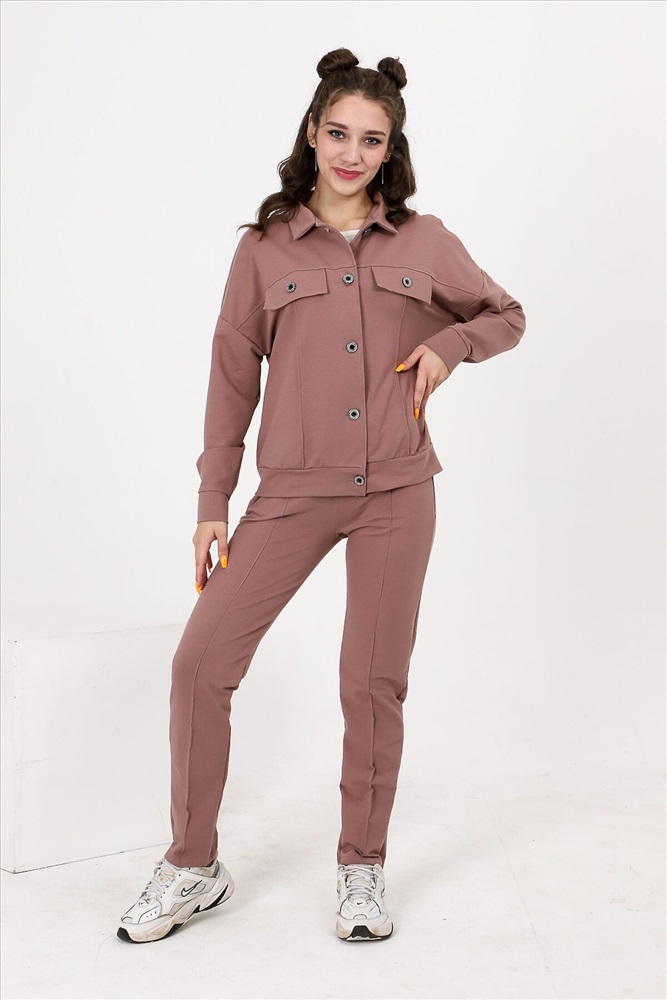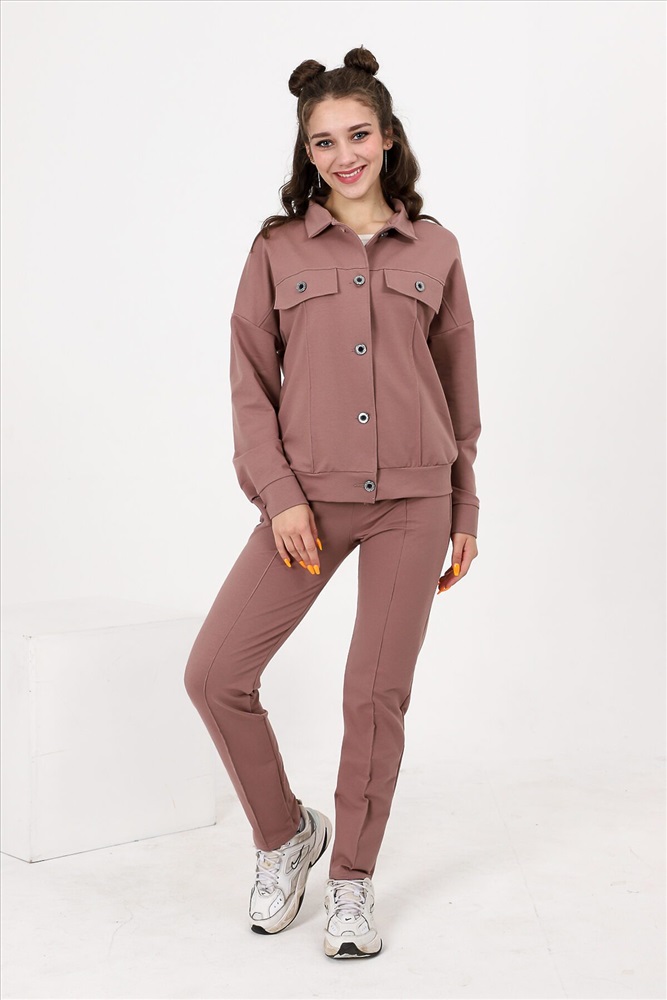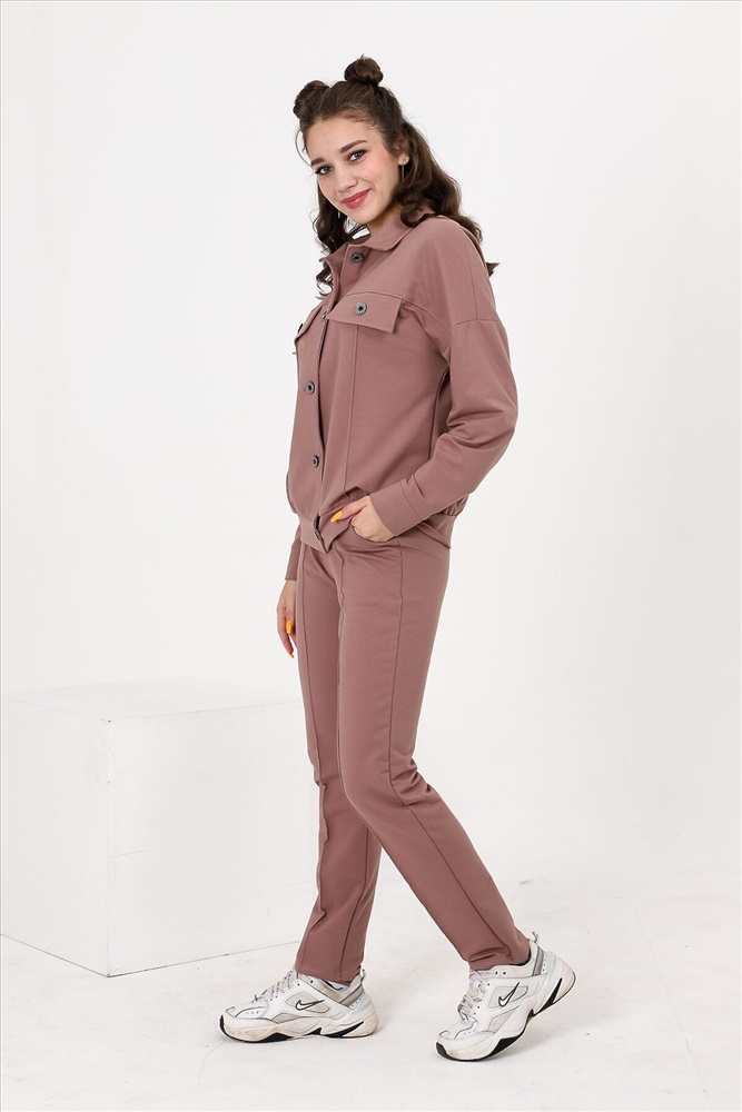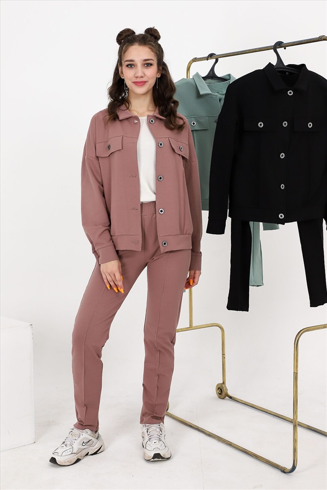 ID товара: 807278 Состав: Хлопок 72%, Полиэстер 20%, Лайкра 8% Сезон: Осень/Зима Длина: Полная Фасон: Прямой Рукав: Длинные Вид застежки: Пуговицы Крой брючин: Зауженный Тип карманов: С отрезным бочком Основная ткань: Хлопок | Футер с лайкрой 2-х нитка Стиль: Повседневный Страна бренда: Россия Страна производства: Россия Костюм состоит из бомбера и брюк. Бомбер с застежкой на пуговицы и петли, с отложным воротником, свободная, на поясе. Полочка и спинка с кокетками. Рукав длинный, на манжете с застежкой на петлю и пуговицу. Брюки на поясе, с боковыми карманами. Вдоль передних половинок обработаны "стрелки". Комментарии к товару