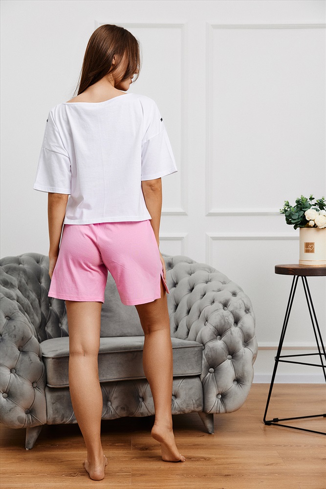 Состав: хлопок 100% Модель: Костюм 8333 Тип товара: костюм с шортами Материал: кулирка | кулирка Бренд: Натали Суслова Карман: боковые Назначение: для дома | для пляжа НДС: 22% Особенности: на резинке Отделка: с карманами | с печатью Посадка: средняя посадка Рейтинг: Рейтинг 4 и выше Рисунок: крупный принт | надпись | разное Рукав: короткий рукав Сезонность: лето | осень | весна | зима Силуэт: свободный Скидка: любая | от 10% и больше Стиль: домашний | молодежный | пляжный Воротник: без воротника Застежка: без застежки Костюм состоит из укороченной футболки оверсайз и шорт. Футболка с округлой горловиной. Рукав короткий. Горловина обработана бейкой из основного полотна. Шорты на поясе, с боковыми карманами и лампасами. В верхней части передних половинок по шву притачивания пояса расположены складки. В нижней части боковых швов обработаны разрезы. Таблица размеров и весафутболка