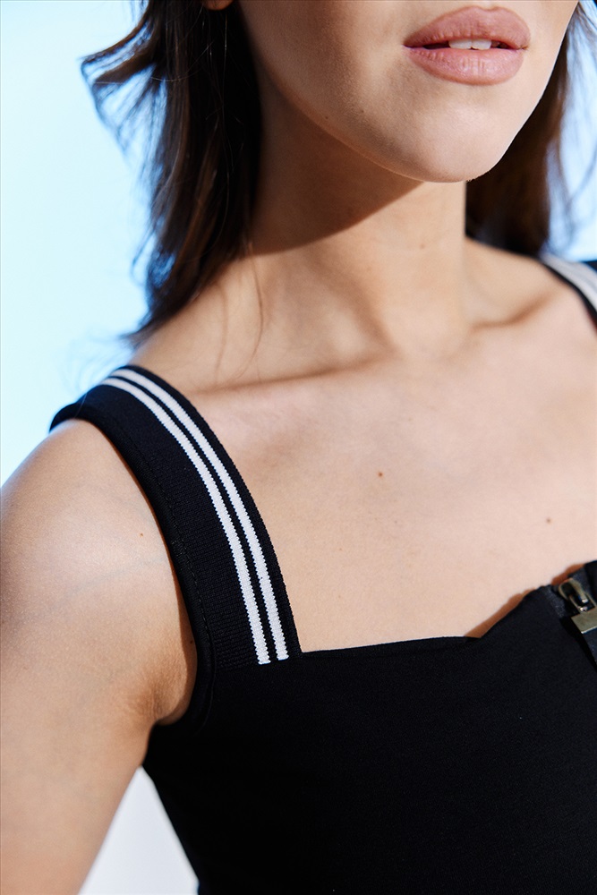 Состав: вискоза 92%; лайкра 8% Модель: Костюм 8358 Тип товара: костюм с юбкой Материал: вискоза пенье | вискоза пенье Бренд: Натали Суслова Длина: короткий Карман: без карманов Назначение: для пляжа Отделка: с тесьмой Посадка: высокая посадка Рисунок: однотонные Рукав: без рукава Сезонность: лето Силуэт: расклешенный Стиль: молодежный | пляжный | повседневный Воротник: без воротника Застежка: молния Комплект состоит из топа и юбки. Топ на широких бретелях из эластичного полотна с контрастными полосками, с квадратной горловиной, с декоративной молнией. Бретели и верх спинки обработаны бейкой из основного полотна. Юбка расклешенная, на поясе. Таблица размеров и весатоп