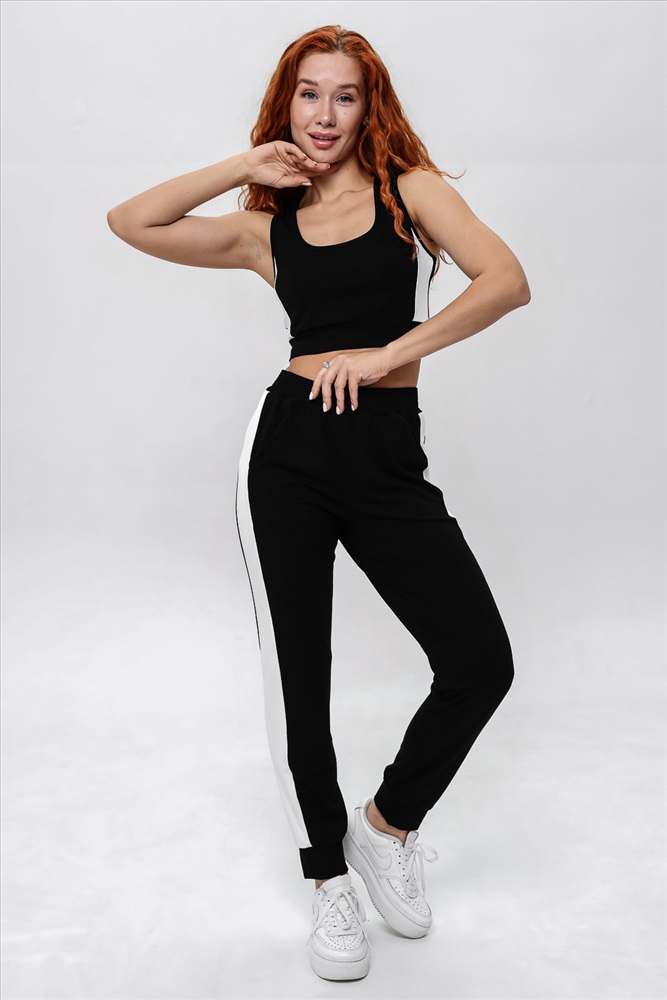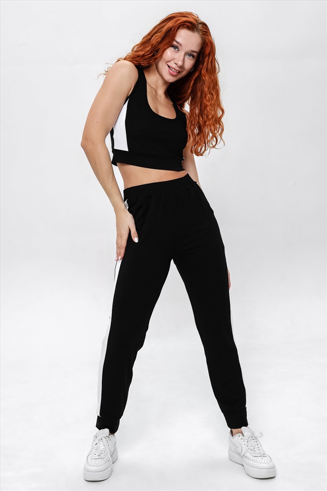 Состав: вискоза 92%, лайкра 8% Модель: Костюм 8388 Тип товара: костюм с брюками Материал: вискоза пенье | вискоза пенье Бренд: Натали Суслова Карман: боковые НДС: 22% Особенности: на резинке Отделка: с карманами | с лампасами | с манжетами Посадка: средняя посадка Сезонность: лето | осень | весна | зима Силуэт: прилегающий | свободный Скидка: любая | от 10% и больше | от 30% и больше Стиль: повседневный | спортивный Воротник: без воротника Застежка: без застежки Комплект состоит из топа и брюк. Топ на узких бретелях, с округлой горловиной на полочке и вырезом борцовка сзади. В верхней части спинки расположена фигурная кокетка и декоративным вырезом. Горловина, проймы и вырез на спинке обработаны бейкой из основного полотна. Брюки на поясе, с боковыми карманами, с лампасами из отделочного полотна вдоль боковых швов, с манжетом. Таблица размеров и весатоп