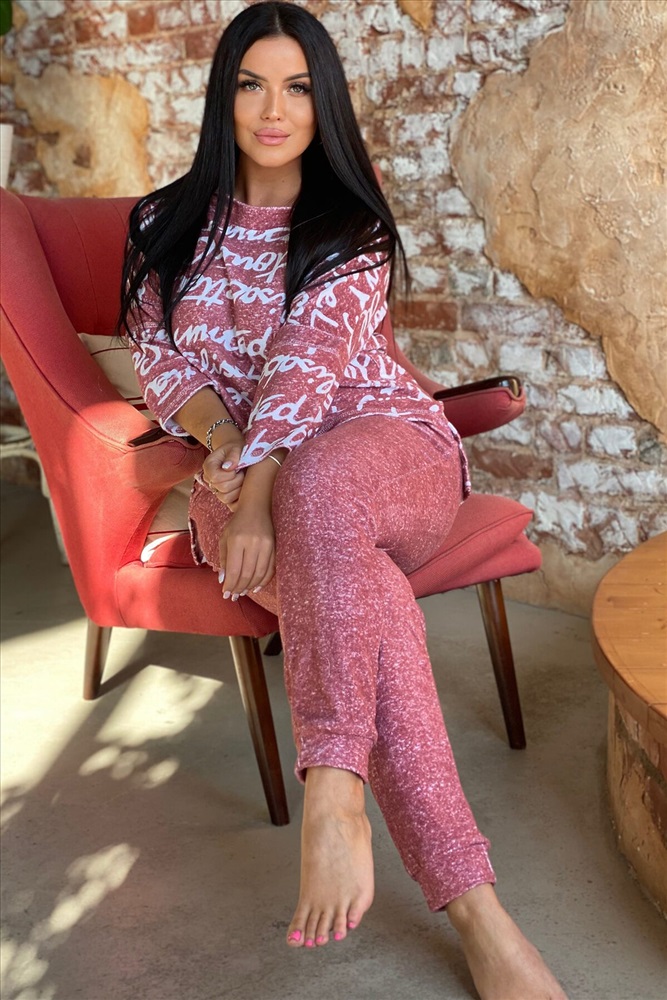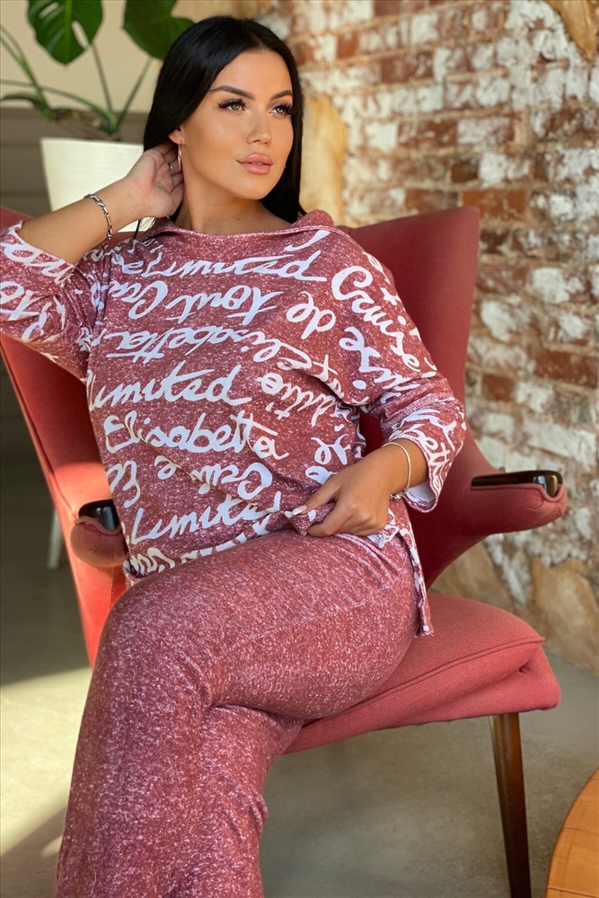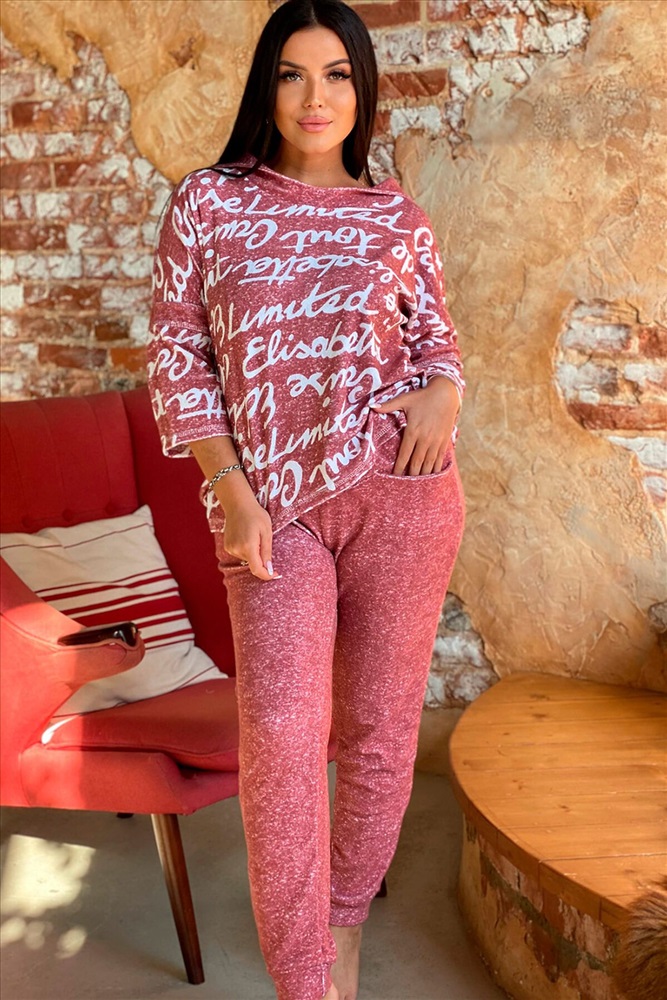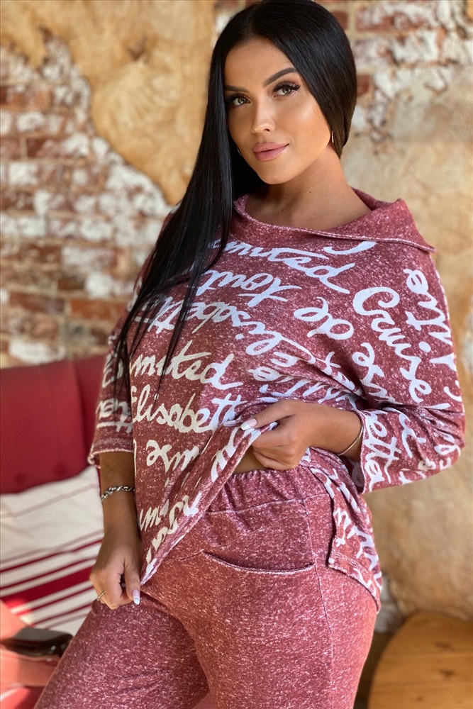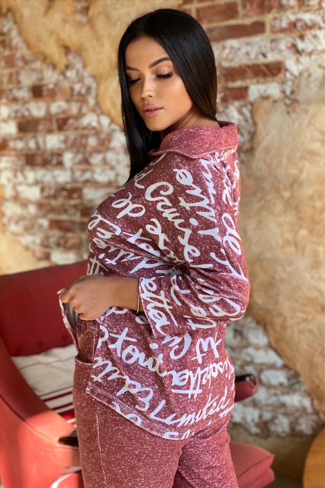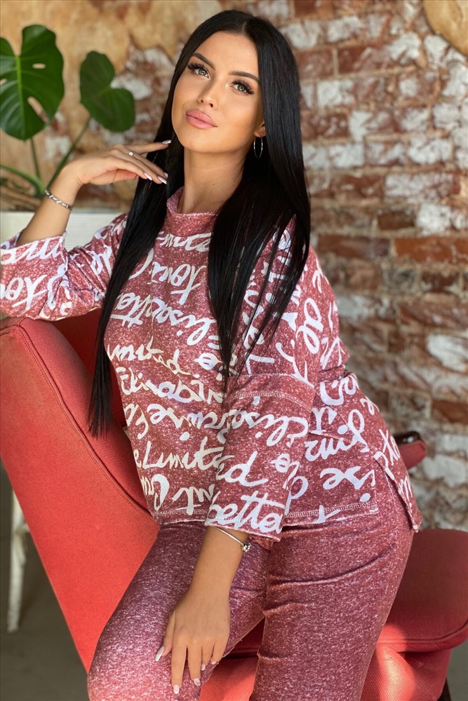 Костюм женский: туника и брюки. Туника прямого силуэта с цельнокроенным рукавом 3/4, со швом. Воротник отложной, спереди переходит в стойку. Полочка короче спинки, по боковым швам разрезы. Брюки полуприлегающие, с манжетами. На передней половинке внутренние карманы.