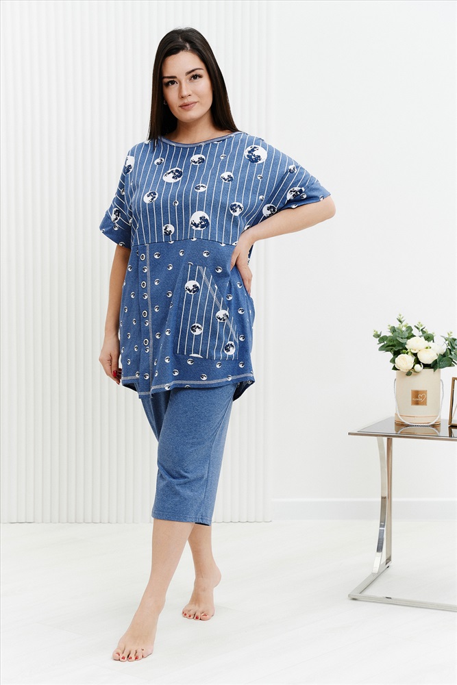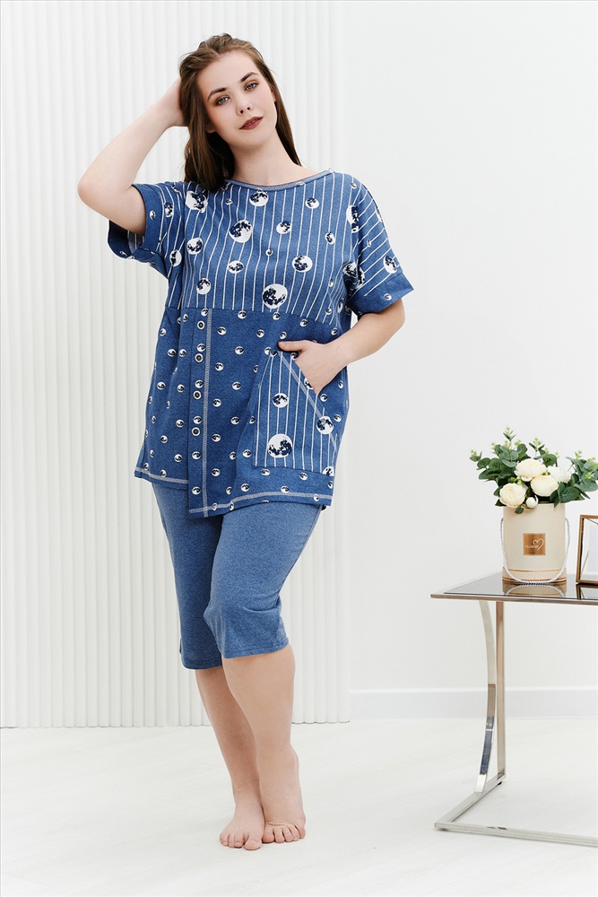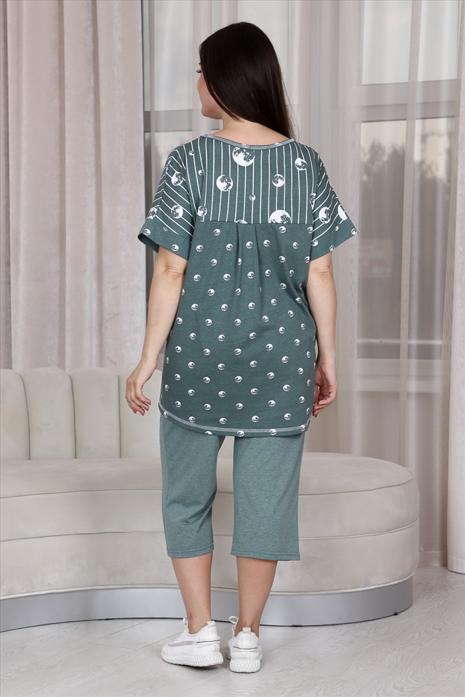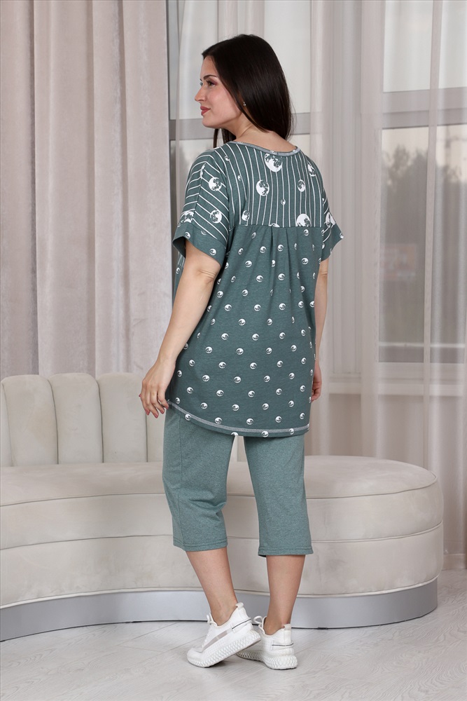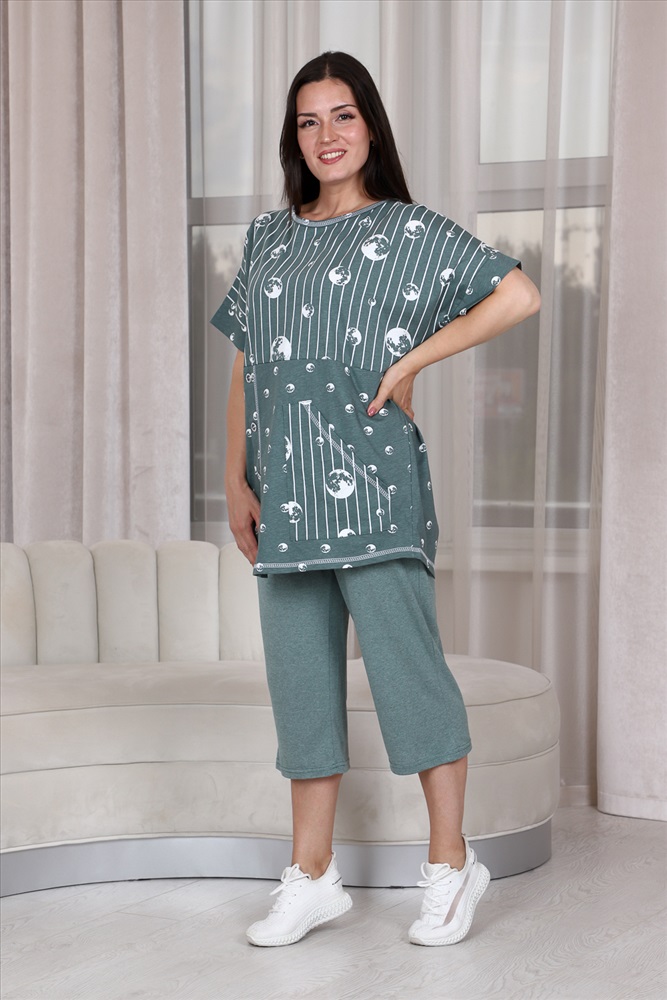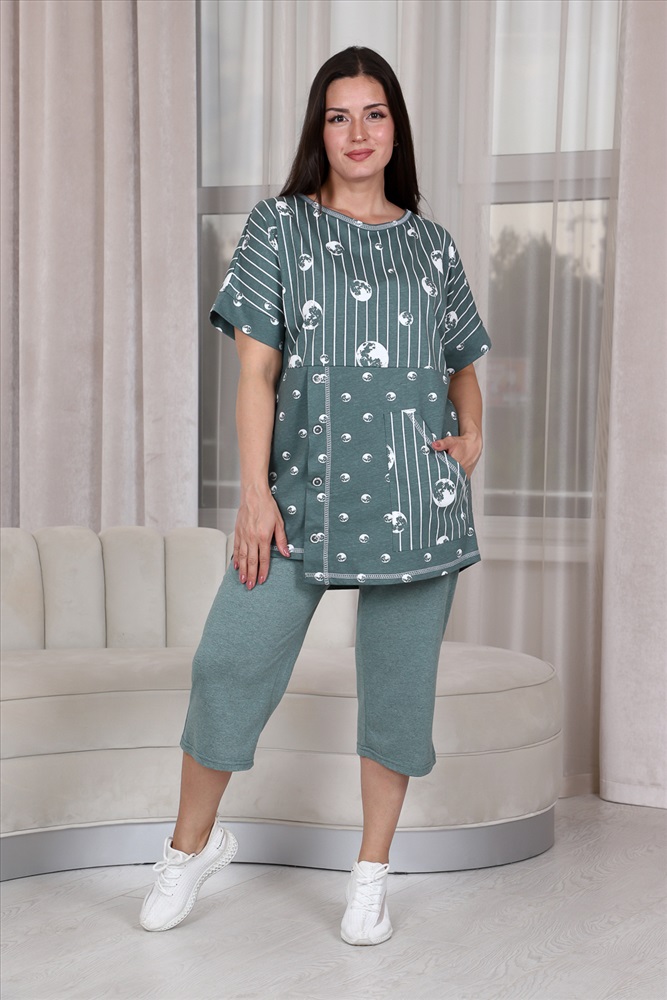 Состав: хлопок 100%; хлопок 43%, ПЭ 57% Модель: Костюм 9142 Тип товара: костюм с бриджами Материал: кулирка | кулирка Бренд: Натали Суслова Карман: боковые | накладные Назначение: для дачи | для дома НДС: 22% Особенности: на резинке Отделка: с карманами | с манжетами Посадка: высокая посадка Рейтинг: Рейтинг 4 и выше Рисунок: горошек | полоска Рукав: короткий рукав Сезонность: лето | осень | весна | зима Силуэт: прямой | свободный Скидка: любая | от 10% и больше Стиль: домашний Воротник: без воротника Застежка: без застежки Костюм женский: туника прямого силуэта и капри. Рукав цельнокроенный короткий с манжетой. Верхняя и нижняя часть туники из тканей-компаньонов. В нижней части туники складка с декоративными пуговицами и накладной карман. На передней части брюк внутренние карманы. Пояс выполнен на многоигольной машине. Таблица размеров и весатуника