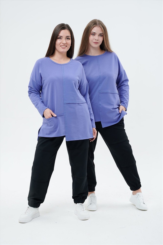 ID товара: 811300 Состав: Хлопок 72%, ПЭ 20%, эластан 8% Сезон: Осень/Зима Длина: Удлиненная Фасон: Прямой Рукав: Длинный Вид застежки: Без застежки Крой брючин: Прямой Рисунок: Без рисунка Тип карманов: В шве Декоративные элементы: Разрезы Основная ткань: Хлопок | Футер с лайкрой 2-х нитка Стиль: Романтический Страна бренда: Россия Страна производства: Россия Костюм женский: туника и брюки. Туника прямого силуэта, горловина круглая, рукав длинный, цельнокроеный со швом., состоит из передней и задней частей. Полочка из четырех частей: на правой части внутренний горизонтальный карман в шве, на левой горизонтальный шов с открытыми срезами, аналогичный шов на спинке и на передней части брюк. В боковых швах разрезы. Брюки свободные по бедрам, зауженные к низу, на передней части брюк внутренние карманы. Пояс выполнен на многоигольной машине. Комментарии к товару