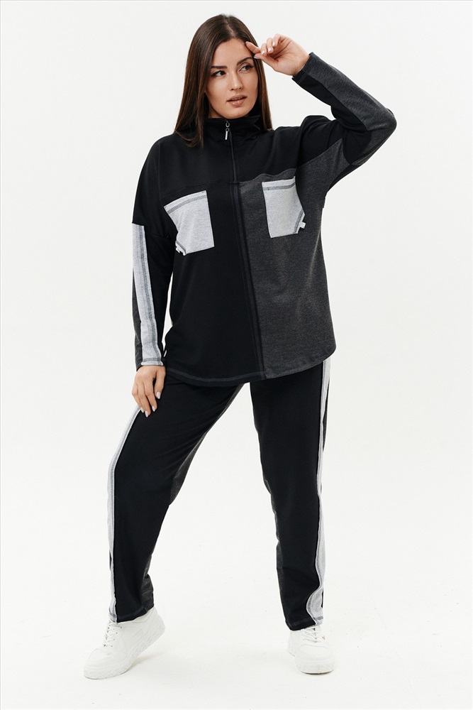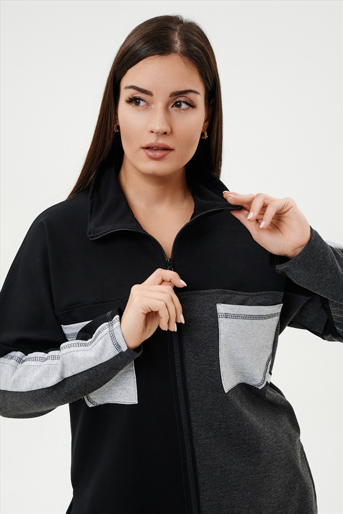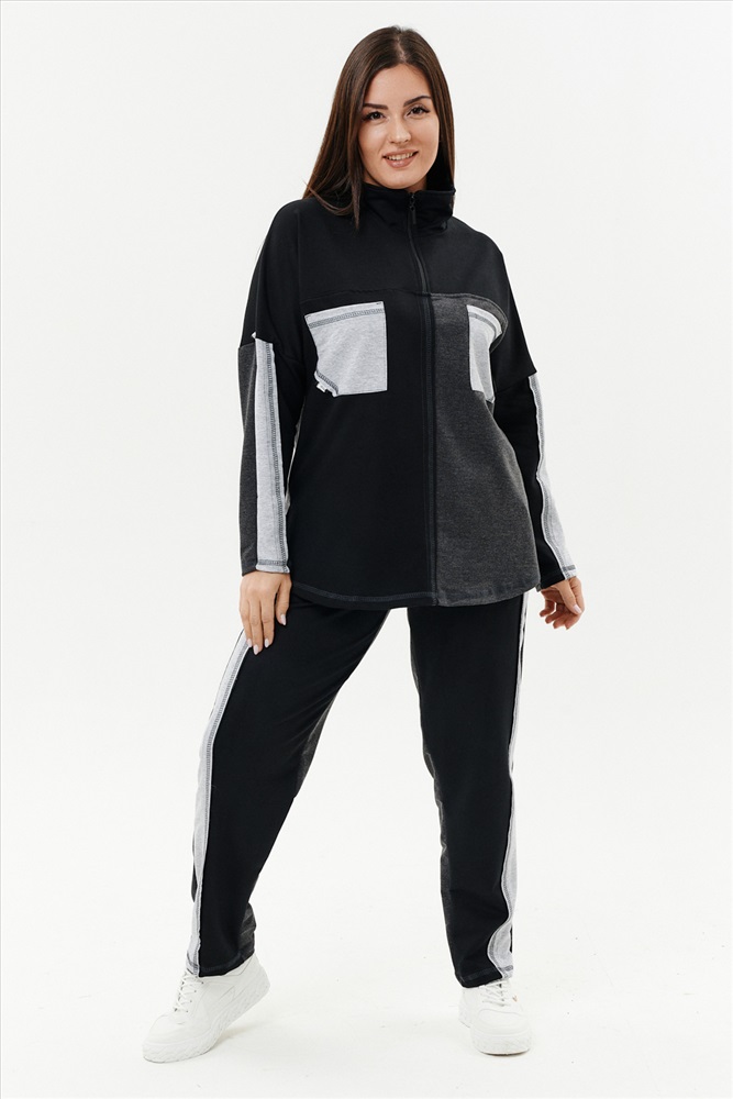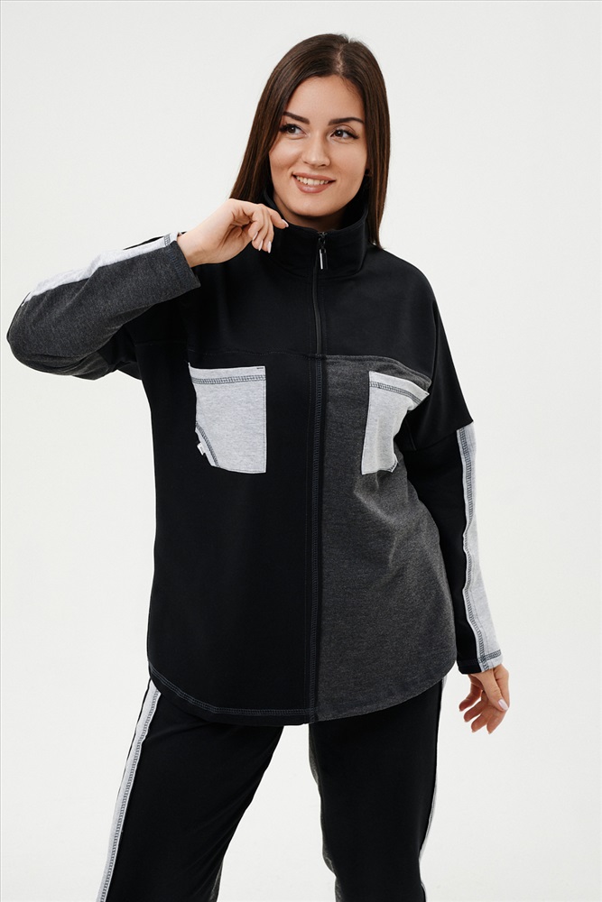 Состав: хлопок 65%, ПЭ 30%, лайкра 5% Модель: Костюм 9162 Тип товара: костюм с брюками Материал: футер с лайкрой 2-х нитка | футер с лайкрой 2-х нитка Бренд: Натали Суслова Карман: боковые | накладные НДС: 22% Особенности: на резинке Отделка: с карманами | с лампасами Посадка: высокая посадка Рейтинг: Рейтинг 4 и выше Рисунок: колорблок Рукав: длинный рукав Сезонность: осень | весна | зима Силуэт: прямой | свободный Скидка: любая | от 10% и больше | от 30% и больше Стиль: повседневный Воротник: воротник стойка Застежка: молния Костюм женский: толстовка и брюки. Толстовка прямого силуэта, брюки свободные по бедрам, зауженные к низу. Рукав цельнокроенный со швом. Воротник-стойка застегивается на тесьму-молнию. В костюме удачно сочетается однотонный футер с меланжированным. На спинке и полочке кокетки. Нагрудные карманы, лампасы на рукавах и брюках из контрастной отделочной ткани. На передних половинках брюк внутренние карманы. Таблица размеров и весатолстовка