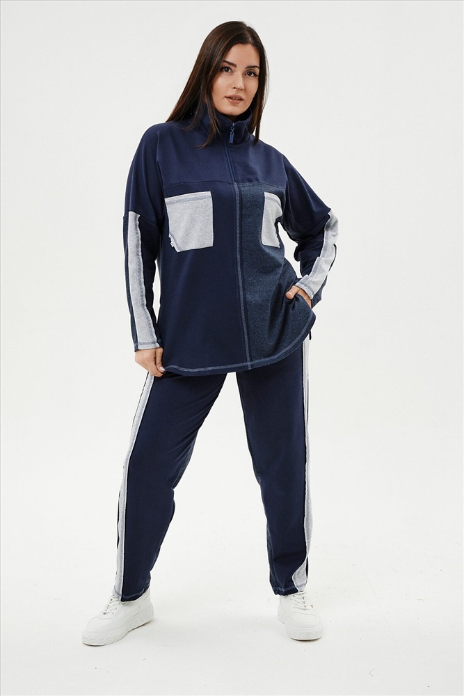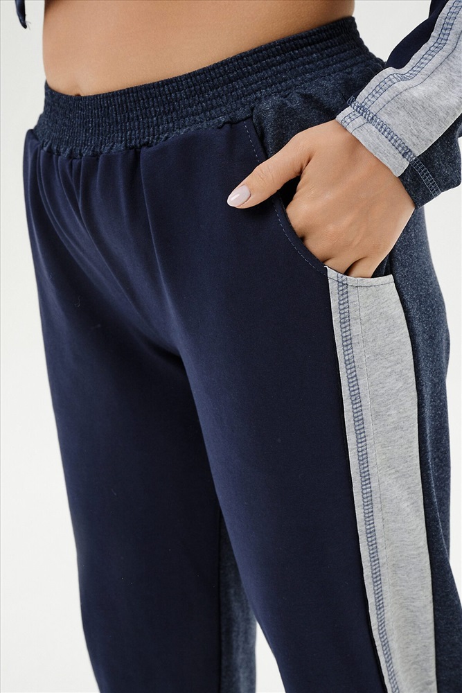 ID товара: 812188 Состав: Хлопок 65%, ПЭ 30%, лайкра 5% Сезон: Демисезон Длина: Полная Фасон: Прямой Рукав: Длинный Вид застежки: Молния Крой брючин: Прямой Тип карманов: Кенгуру Декоративные элементы: Лампасы Основная ткань: Хлопок | Футер с лайкрой 2-х нитка Стиль: Спортивный Страна бренда: Россия Страна производства: Россия Костюм женский: толстовка и брюки. Толстовка прямого силуэта, брюки свободные по бедрам, зауженные к низу. Рукав цельнокроенный со швом. Воротник-стойка застегивается на тесьму-молнию. Карман "кенгуру". В костюме удачно сочетается однотонный футер с меланжированным. На спинке и полочке кокетки. Нагрудные карманы, лампасы на рукавах и брюках из контрастной отделочной ткани. На передних половинках брюк внутренние карманы. Комментарии к товару