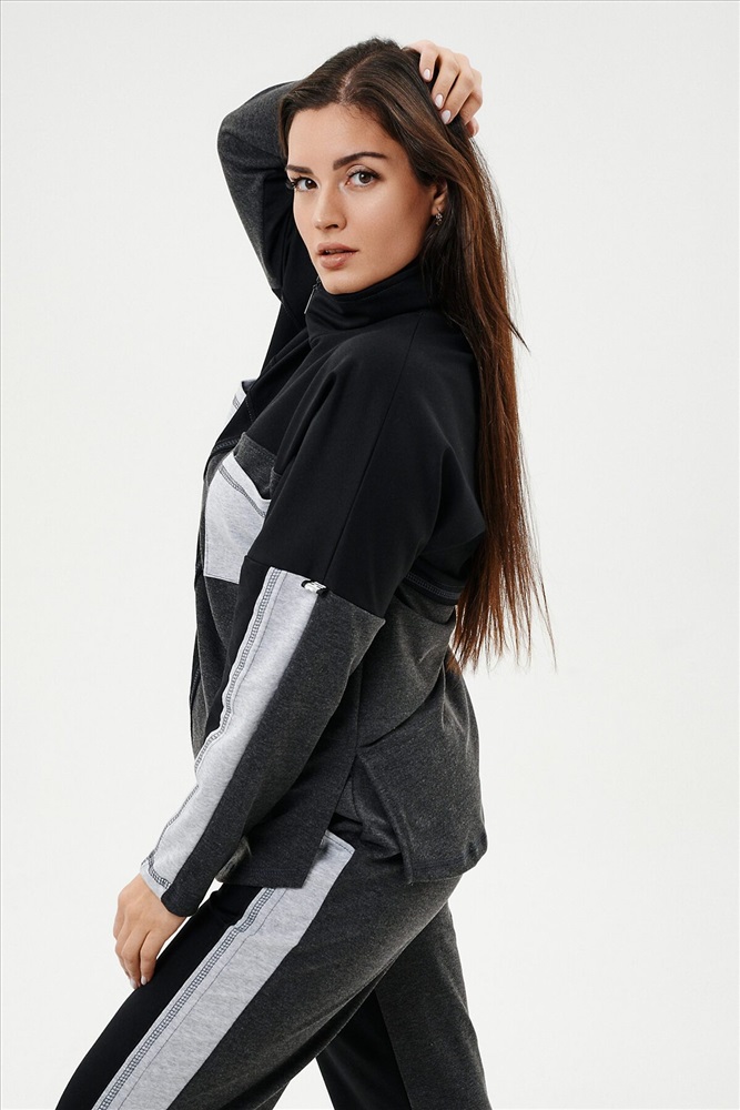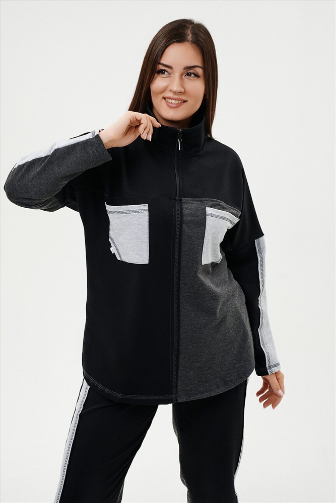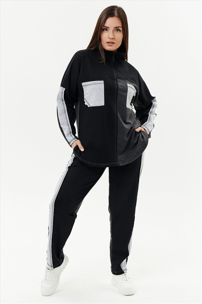 ID товара: 812190 Состав: Хлопок 65%, ПЭ 30%, лайкра 5% Сезон: Демисезон Длина: Полная Фасон: Прямой Рукав: Длинные Вид застежки: Молния Крой брючин: Прямой Тип карманов: Кенгуру Декоративные элементы: Лампасы Основная ткань: Хлопок | Футер с лайкрой 2-х нитка Стиль: Спортивный Страна бренда: Россия Страна производства: Россия Костюм женский: толстовка и брюки. Толстовка прямого силуэта, брюки свободные по бедрам, зауженные к низу. Рукав цельнокроенный со швом. Воротник-стойка застегивается на тесьму-молнию. Карман "кенгуру". В костюме удачно сочетается однотонный футер с меланжированным. На спинке и полочке кокетки. Нагрудные карманы, лампасы на рукавах и брюках из контрастной отделочной ткани. На передних половинках брюк внутренние карманы. Комментарии к товару