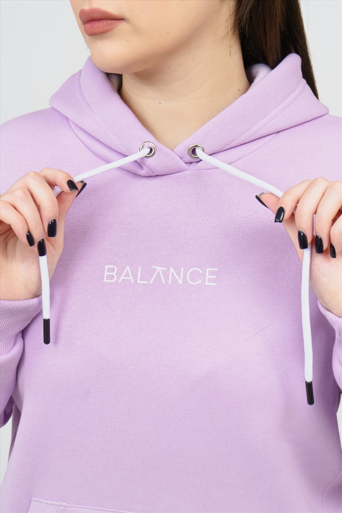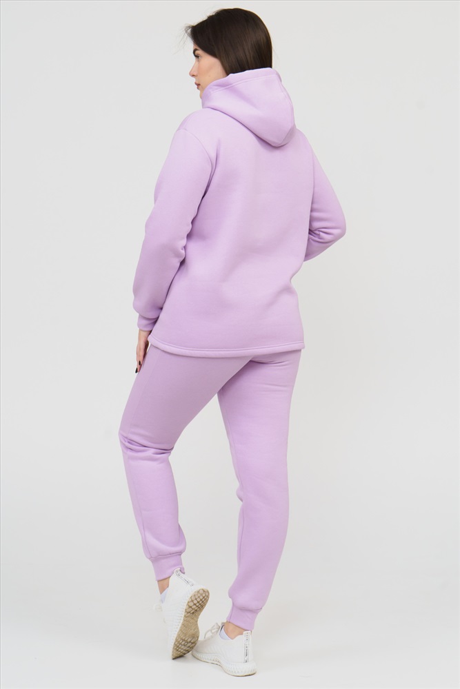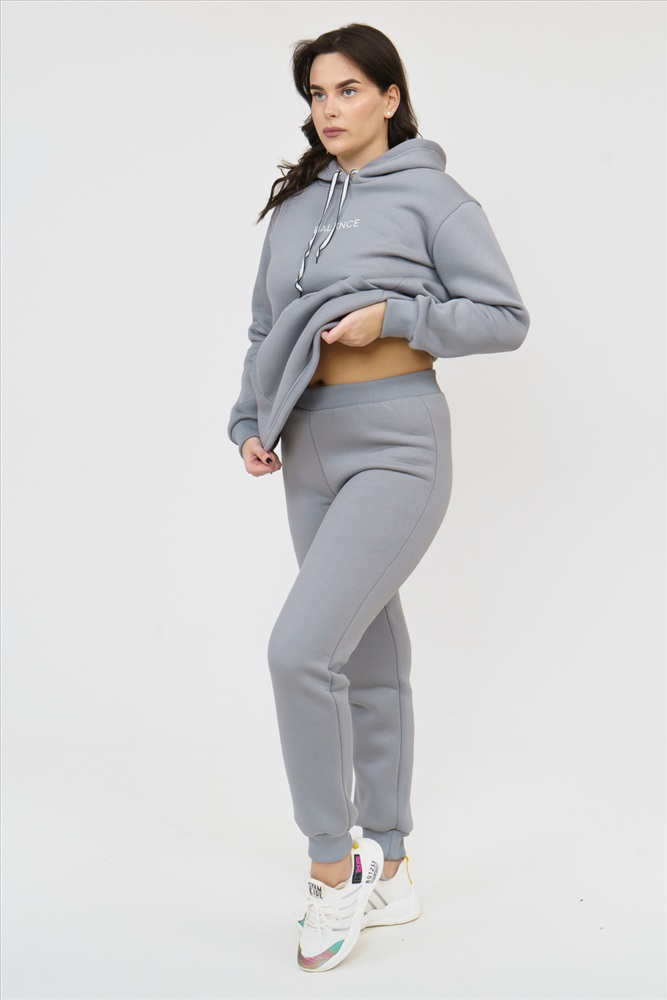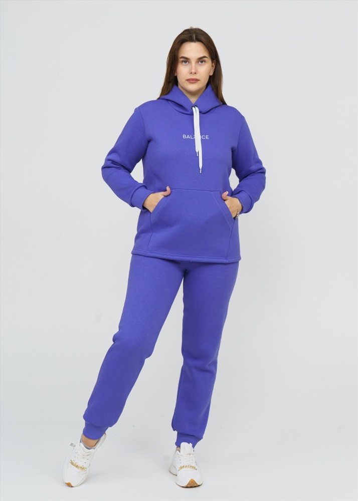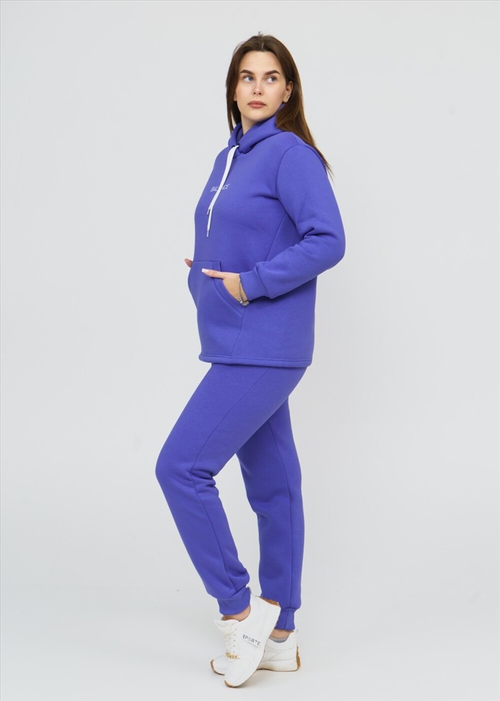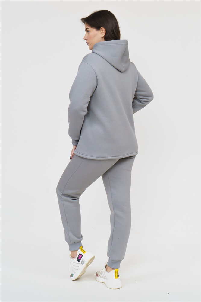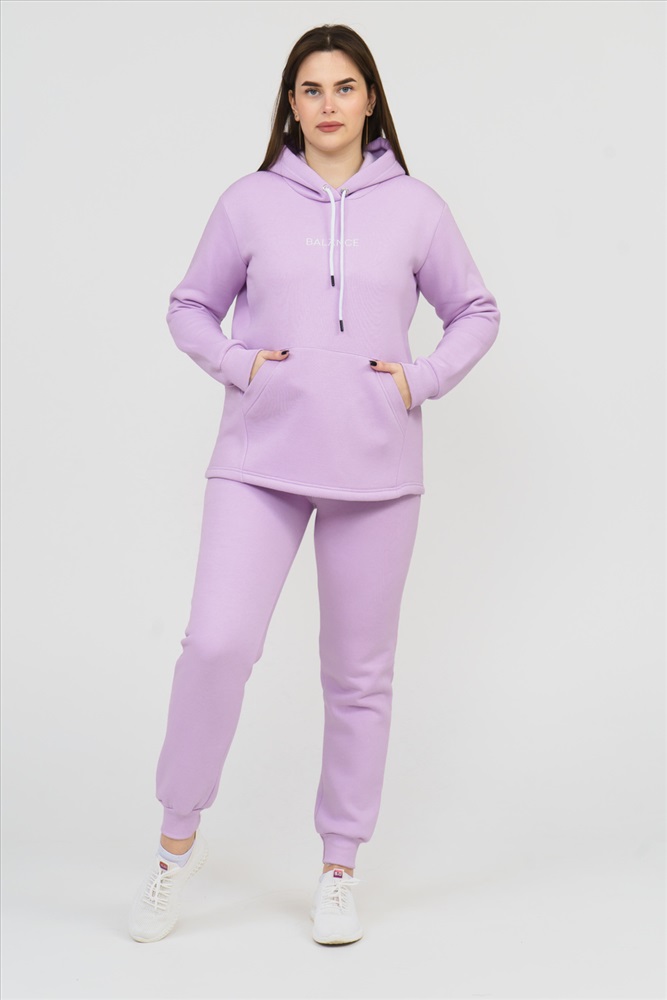 Застежка: без застежки Костюм женский состоит из толстовки и брюк. Толстовка с капюшоном, прямого силуэта, с карманомкенгуру. На полочке нанесен буквенный принт. Брюки без карманов, заужены к низу, на манжете.