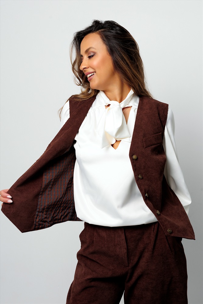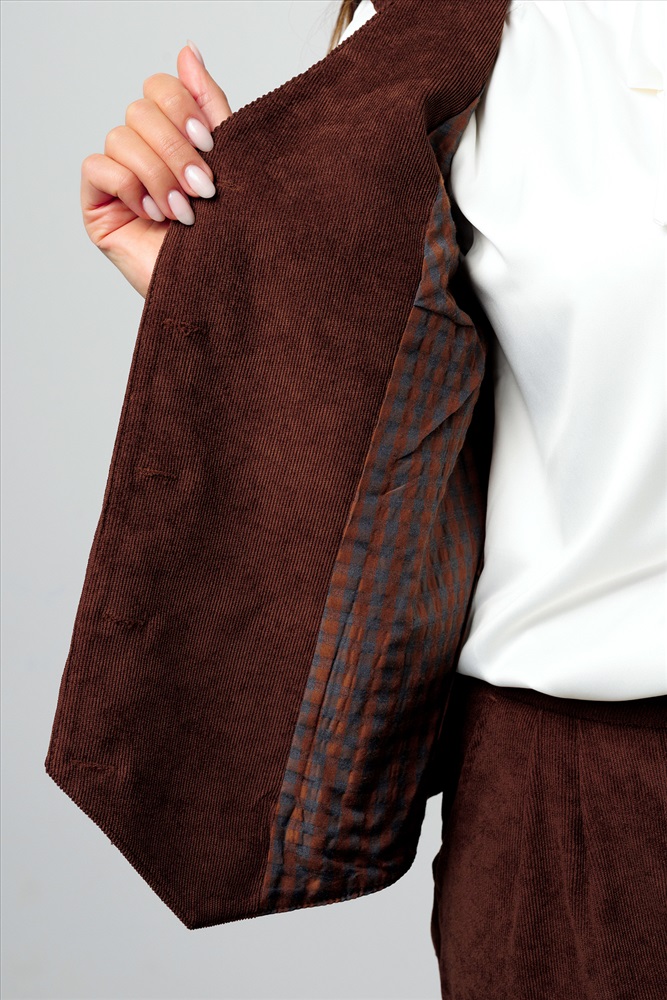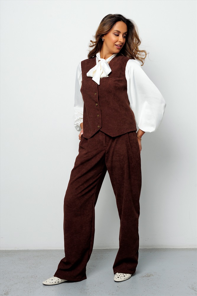 Состав: 98% п/э; 2% лайкра Модель: Костюм брючный вельветовый с жилеткой 399BRN Тип товара: костюм с брюками Материал: вельвет | вельвет Бренд: Рапоза Карман: боковые Отделка: с карманами Посадка: высокая посадка Рисунок: однотонные Рукав: без рукава Сезонность: лето | осень | весна | зима Силуэт: свободный Стиль: молодежный | офисный | повседневный Воротник: без воротника Застежка: молния | пуговицы Костюм женский брючный с жилеткой от Raposa стильное и комфортное решение для современных женщин 2025, ценящих элегантность и практичность. Это идеальное сочетание классики и тренда. Благородство однотонного дизайна дополняется удобством. Летний и весенний базовый костюм из дышащего и не мнущегося вельвета станет лучшим выбором для вечерних мероприятий, деловых встреч или просто для отдыха на море. Коричневый костюм женский в классическом стиле с широкими штанами и однобортным жилетом подчеркивает его универсальность, позволяя комбинировать его с различными аксессуарами. Брюки палаццо, трубы, с прорезными карманами добавляют образу женственности и комфорта, а жилетка с застежкой на клепки придает ему особый шарм. Эргономичная резинка на талии сзади у широких штанишек мягко прилегает без сдавливания, а передняя планка пояса имеет корректирующий эффект, способствуя идеальной посадке. Костюм двойка из вельвета обеспечивает комфорт в теплую и прохладную погоду, а его фактура в рубчик и клетчатый подклад шикарны. Велюровая ткань не мнется и сохраняет форму после стирки. Модель костюма премиум качества в стиле олд мани с небольшим оверсайз кроем прекрасно подойдет для женщин больших размеров плюс сайз до 58 и 60, подчеркивая достоинства фигуры и позволяя выглядеть шикарно и безупречно. Этот нарядный костюм с шароварами станет незаменимым элементом вашего гардероба, будь то рабочая встреча в офисе, вечернее свидание или летний отдых. Брючный костюм женский праздничный идеальный вариант на выпускной или на свадьбу, для подружек невесты. С блузой или водолазкой костюм с брюками палаццо вписывается в рамки делового дресс кода и применим как школьная форма для девочки подростка, девушки. Бархатный костюм прекрасно подходит для учебы в колледже или университете, для прогулок. Строгий комплект двойка с безрукавкой с глубоким V образным вырезом и брюками с защипами поможет создать образ красивой и уверенной в себе женщины. Ткань: вельвет. Состав: 98% п/э + 2% лайкра Таблица размеров и весаБрюки