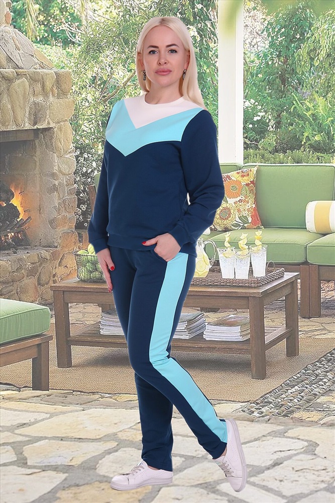 ID товара: 278300 Состав: Хлопок 72%, Полиэстер 20%, Лайкра 8%. Сезон: Весна/Лето Длина: Полная Фасон: Прямой Рукав: Длинный Крой брючин: Прямой Рисунок: Геометрический Основная ткань: Хлопок | Футер с лайкрой 2-х нитка, Футер с лайкрой двухнитка — это футерная ткань с добавлением двух дополнительных нитей, в состав которой входит лайкра для улучшения свойств ткани. Особенности- эластичность, мягкость, гигроскопичность, легкость в уходе, комфорт при носке. Стиль: Спортивный Страна бренда: Россия Страна производства: Россия Стильный костюм из легкого трикотажа, слегка силуэтные брючки средней посадки отлично сидят за счет широкой эластичной резинки на поясе. Боковые широкие лампасы визуально стройнят и удлиняют ноги. Свитшот свободного прилегания не сковывает движений, располагая к активности. Комментарии к товару