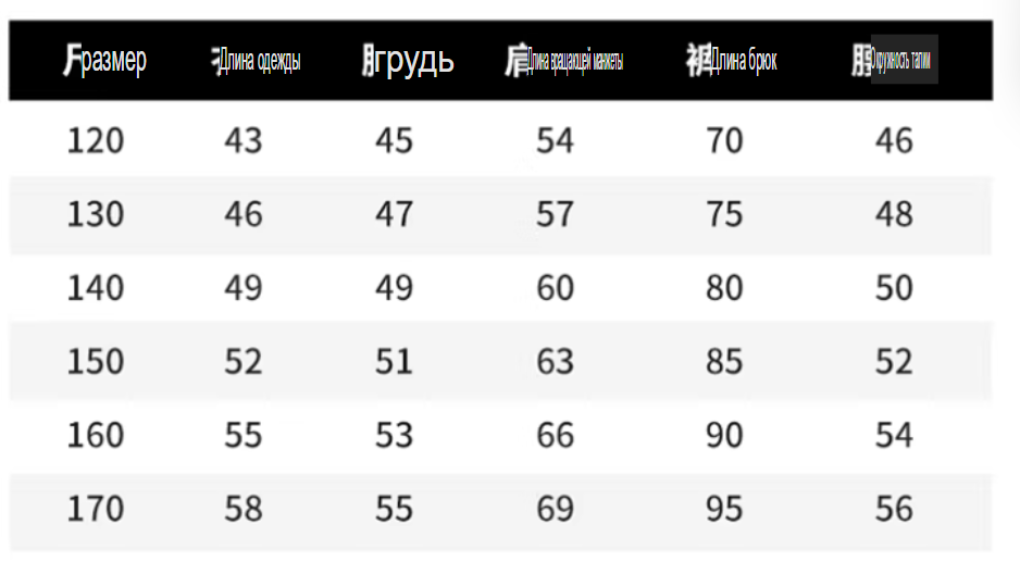 Размер: 120, 130, 140, 150, 160, 170