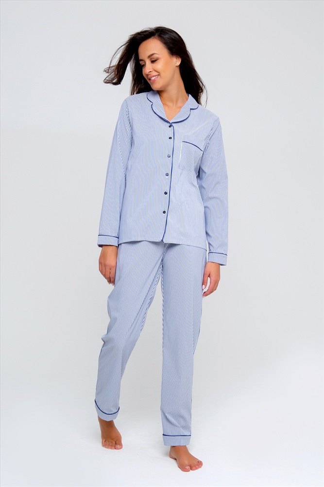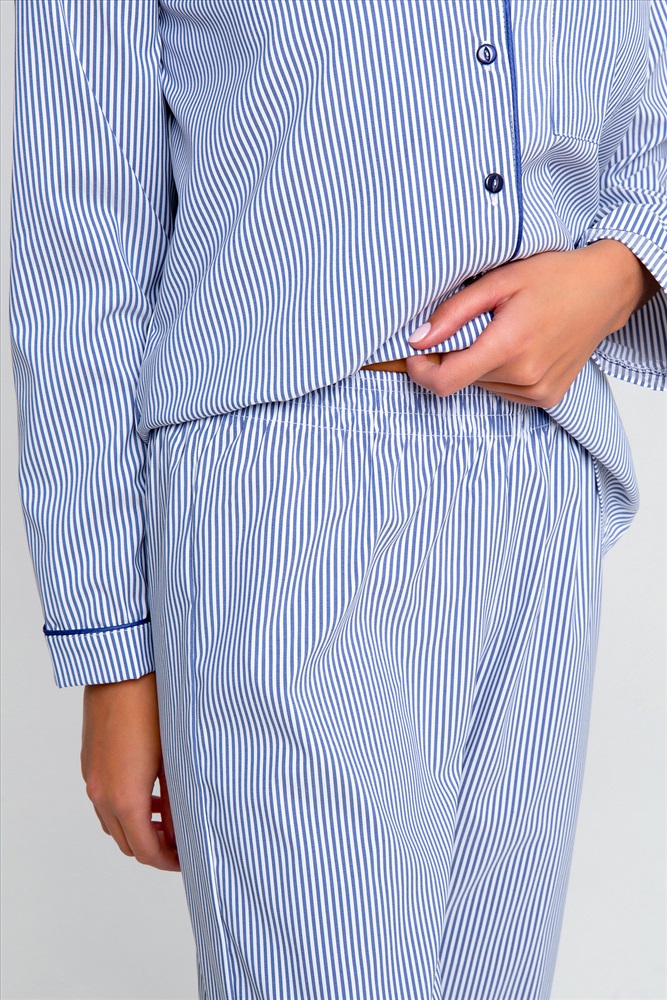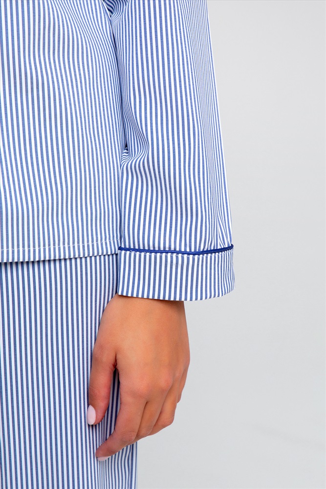 Состав: 70% полиэстер; 30% вискоза Модель: Костюм домашний с брюками и рубашкой 340BLU Тип товара: костюм с брюками Материал: сатин | сатин Бренд: Рапоза Карман: накладные Назначение: для дома НДС: 5% Особенности: на резинке Отделка: с карманами Посадка: высокая посадка Рисунок: полоска Рукав: длинный рукав Сезонность: лето | осень | весна | зима Силуэт: прямой | свободный Скидка: любая | от 10% и больше | от 30% и больше Стиль: домашний Воротник: отложной воротник | воротник с лацканами Застежка: пуговицы Женская пижама в полоску от бренда Raposa - это настоящая находка для всех любительниц комфорта и качества. Этот домашний комплект, призванный подарить Вам нежность и уют во время отдыха дома, состоит из стильной рубашки и удобных брюк. Одной из главных особенностей этой пижамы является ее уникальный дизайн. Рубашка и брюки декорированы полосатым принтом, который придает им особый шарм и приятно радует глаз. Такой нежный и женственный принт станет отличным дополнением Вашего образа и подчеркнет Вашу индивидуальность. Блузка в полоску оформлена кантом, который акцентирует внимание на изысканные детали этого изделия. Английский воротник является особенным акцентом этой рубашки. Он обрамляет шею женщины, делая образ более изысканным. Этот элемент дизайна подчеркивает шею и лицо, придавая образу женственность и утонченность. Грудь рубашки с длинным рукавом украшена карманом, который является не только функциональным, но и стильным дополнением. Рукава сорочки декорированы манжетами с кантом, которые органично дополняют образ, придают изделию более завершенный и аккуратный вид. Брюки в полоску имеют прямой крой, что обеспечивает комфортную посадку и подходит практически всем женщинам. Пояс на резинке позволяет регулировать посадку штанов, не стесняет движений. Ткань: сатин. Состав: 30% вискоза+70% полиэстер Таблица размеров и весарубашка