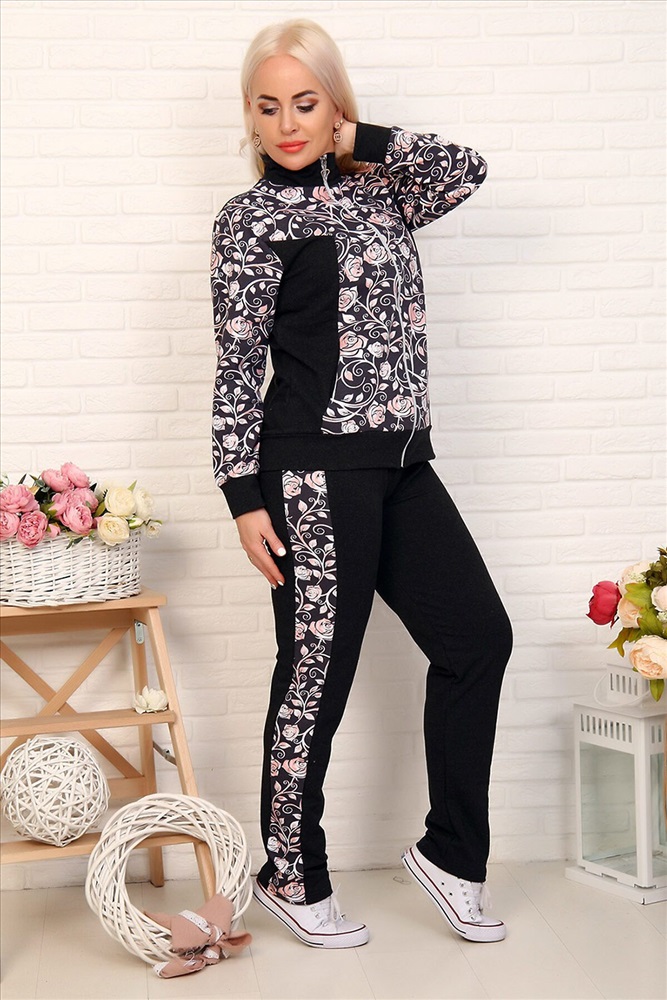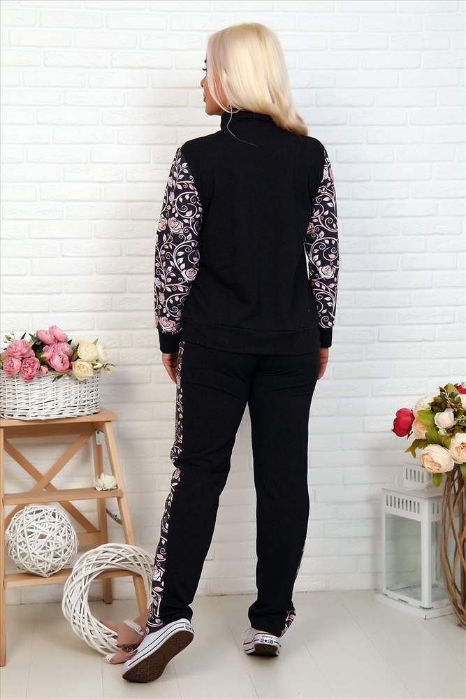 Страна производства: Россия Костюм женский — толстовка комбинированная с карманами на молнии, воротник-стойка, брюки с лампасами.