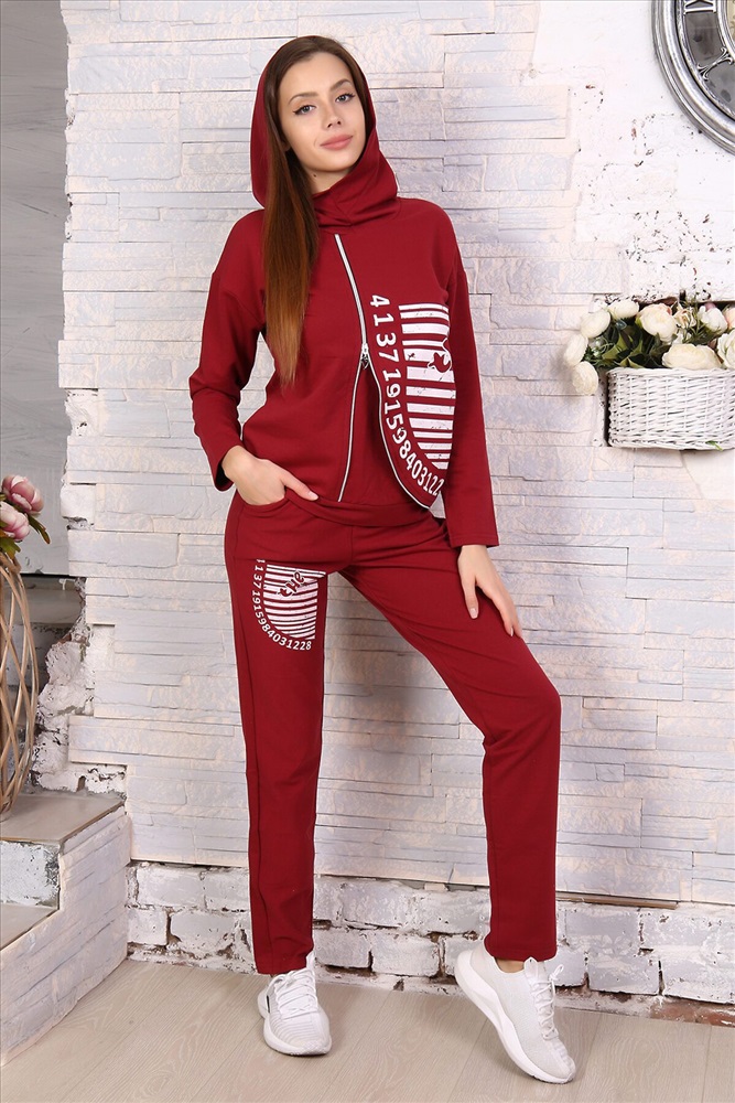 Страна производства: Россия Костюм женский с печатью и оригинальным дизайном толстовки.
