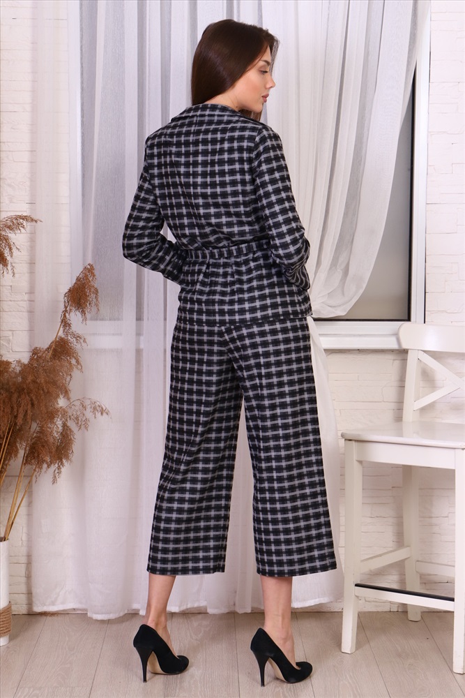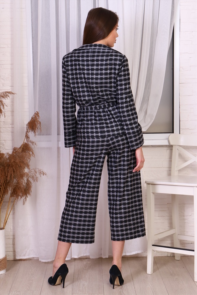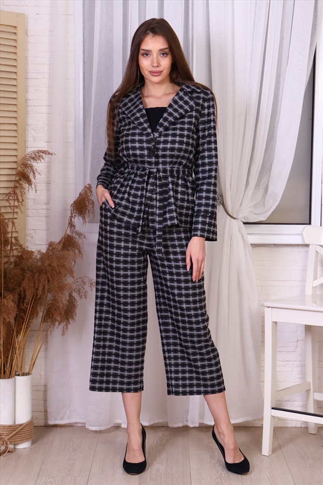 Состав: вискоза-60%; полиэстер-35%; эластан-5% Модель: Костюм КТ18 Тип товара: костюм с брюками Материал: костюмная ткань | костюмная ткань Бренд: RAMANTI Длина: короткий | укороченный Карман: боковые Назначение: для офиса | для особых случаев Отделка: с карманами | с поясом Посадка: средняя посадка Рейтинг: Рейтинг 4 и выше Рисунок: клетка Рукав: длинный рукав Сезонность: лето | осень | весна Силуэт: прямой Стиль: молодежный | офисный Воротник: воротник с лацканами Застежка: пуговицы Костюм из легкой ткани с прямыми укороченными брюками пользуется большой популярностью среди женщин любого возраста. Прямой крой брюк подчеркнет достоинства и скроет возможные недостатки. Жакет с лацканами выполнен без подкладки, что позволит ему более мягко сесть по фигуре, а поясок подчеркнет талию. Таблица размеров и весажакет