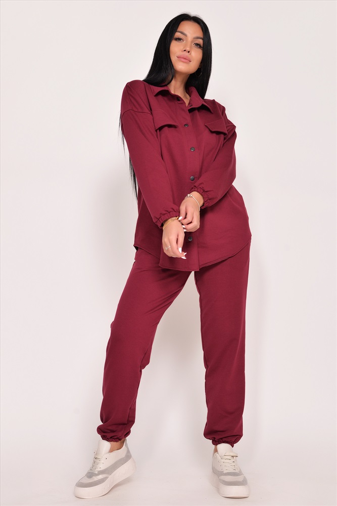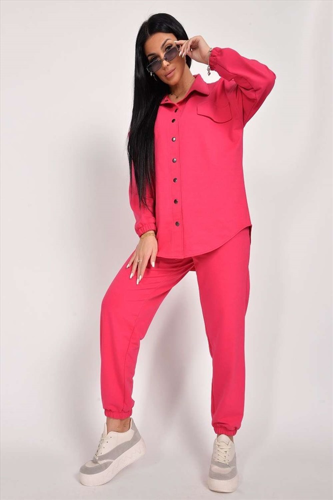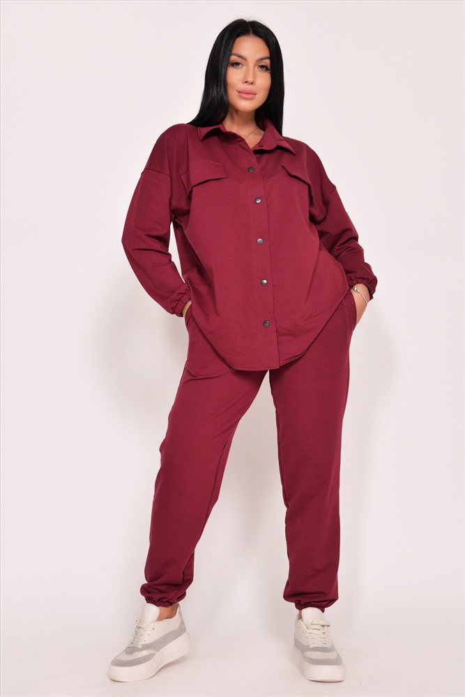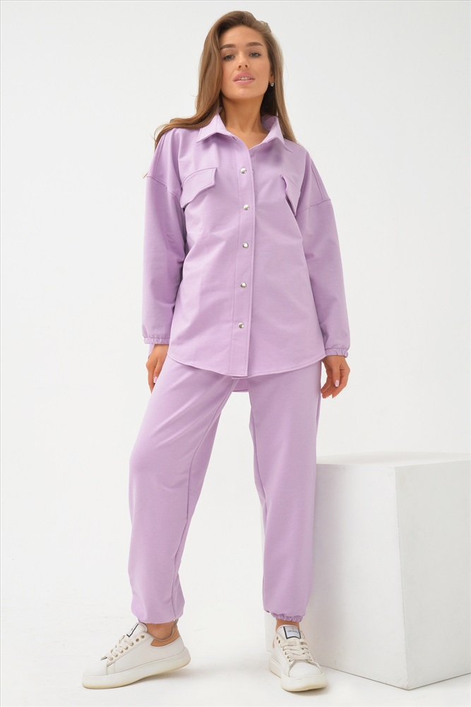Застежка: кнопка Стильный женский костюм. Рубашка на клепках и джоггеры на резинке. Костюм изготовлен из качественного футера 2-х нитки, ткань приятная к телу и практичная в носке. Незаменимая вещь в гардеробе каждой модницы! Удобный крой, модель оверсайз, благодаря чему костюм совершенно не сковывая движения. Костюм можно приобрести для себя, но также он будет отличным подарком для подруги или мамы. Стань самой модной и привлекательной в современном образе от бренда Ландыш