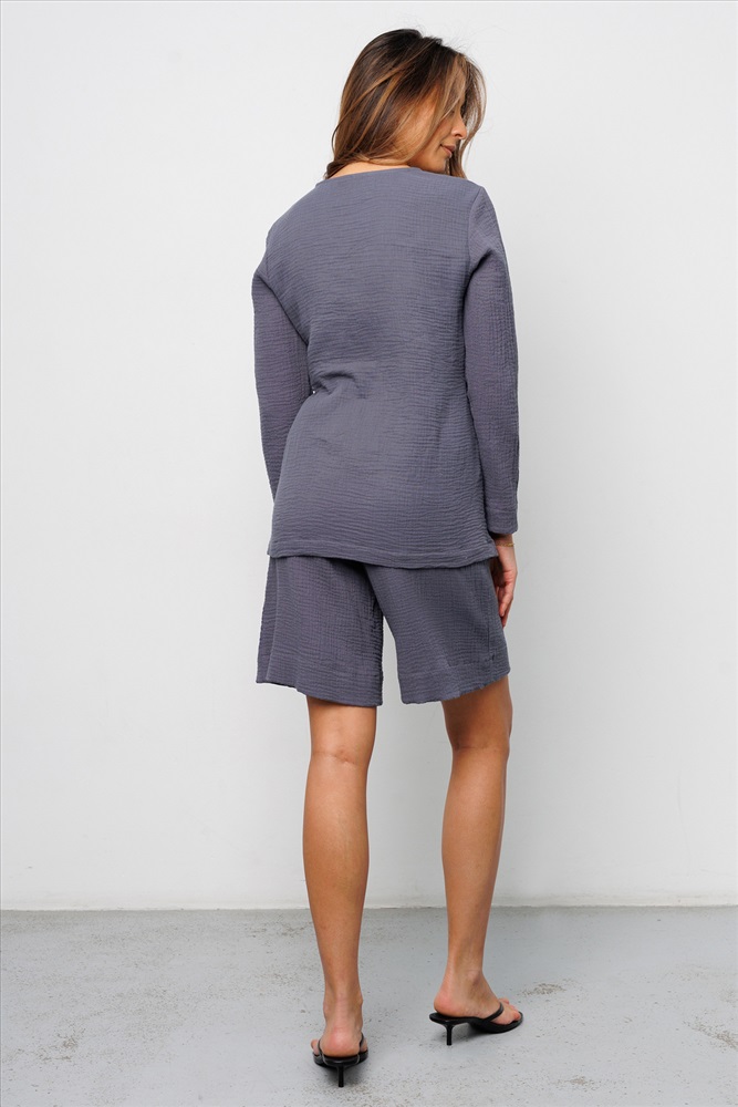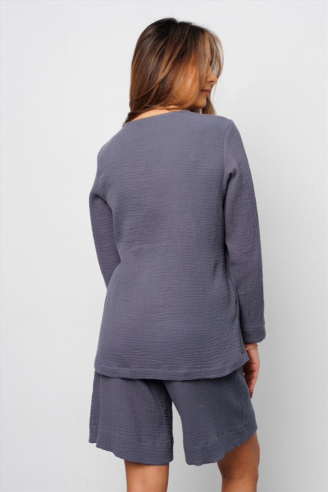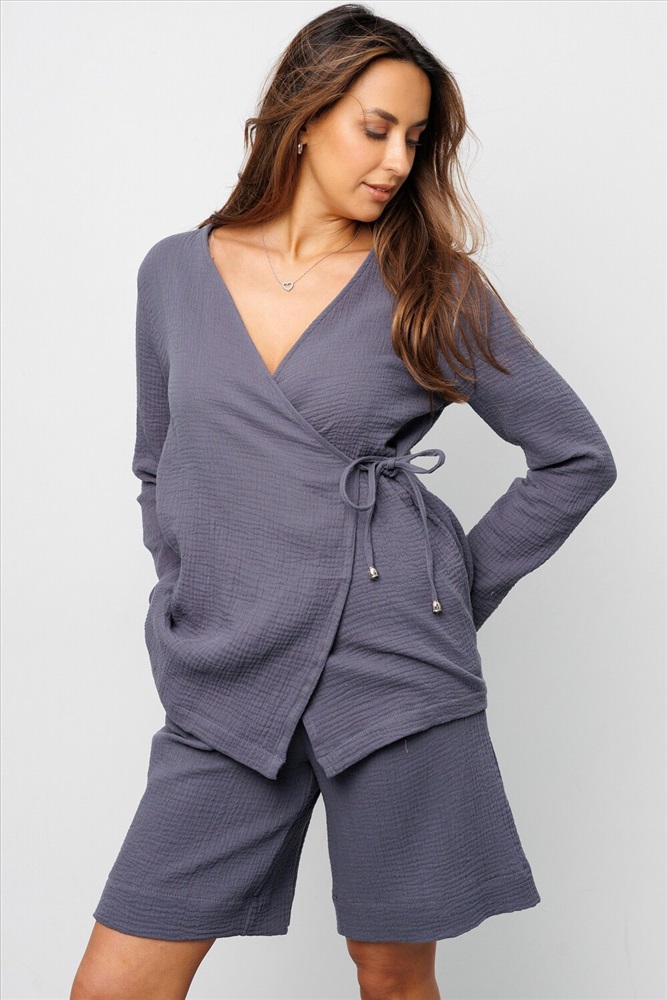 Состав: 100% хлопок Модель: Костюм летний с шортами на запах 407GRY Тип товара: костюм с шортами Материал: муслин | муслин Бренд: Рапоза Карман: боковые Назначение: для дома НДС: 5% Особенности: на резинке Отделка: с карманами | с поясом Посадка: высокая посадка Рисунок: однотонные Рукав: длинный рукав Сезонность: лето Силуэт: прямой | свободный Скидка: любая | от 10% и больше | от 30% и больше Стиль: домашний | пляжный Воротник: без воротника Застежка: на запах | пояс Представляем Вам стильный летний костюм двойка от Raposa, созданный для тех, кто ценит качество и элегантность. Этот муслиновый наряд станет вашим любимцем в жаркие дни! Он сшит из 100% хлопок, что делает его невероятно мягким, дышащим и приятным к телу. Пижамный костюм состоит из рубашки на запах с длинными рукавами и шортами бриджами, которые обеспечивают свободу движений и комфорт в любое время суток. Благодаря высокой посадке и свободному крою, этот костюм из муслина подойдет для полных женщин плюс сайз больших размеров до 54 и 56 и для беременных. Пляжный костюм можно носить как дома, так и на прогулке или наряд на фотосессию, на пижамную вечеринку. Однотонный дизайн в нежном сером цвете, позволяет легко комбинировать костюм женский с другими вещами, создавая разнообразные образы. Кофта на завязках позволяет регулировать посадку по фигуре, а прорезные карманы на бермудах добавляют практичности. Этот костюм с шортами - идеальный выбор для тех, кто ищет удобную, красивую и универсальную одежду на лето и весну 2025. Костюм кимоно станет прекрасным подарком девушке, для девочки подростка. Легкий и воздушный хлопковый костюм подарит Вам ощущение прохлады даже в самую жаркую погоду. Его можно носить как пижаму или как стильный домашний костюм. А благодаря своей универсальности и модели оверсайз, костюм с широкими штанами прекрасно подойдет для отдыха на природе, прогулок по городу или просто для времяпрепровождения дома. Таблица размеров и весакофта