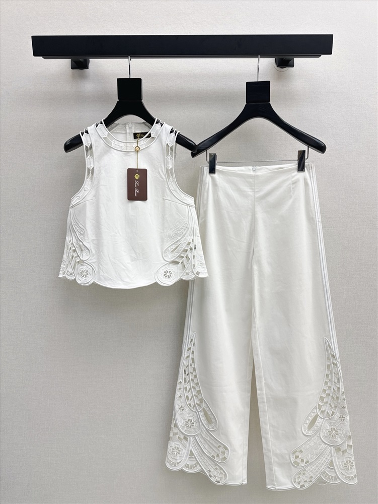 LP 25Ss новейший костюм с тяжелой вышивкой на весну и лето 🤍 Элегантный ажурный вышитый жилет + брюки Жилет без рукавов с круглым вырезом и ажурной вышивкой, вертикальный дизайн Сверхтяжелый дизайн с той же серией брюк Высокая линия талии оптимизирует пропорции тела Сохраняет дизайн, прекрасную атмосферу и простоту с элегантностью Одноцветная разработка .Лен хлопок