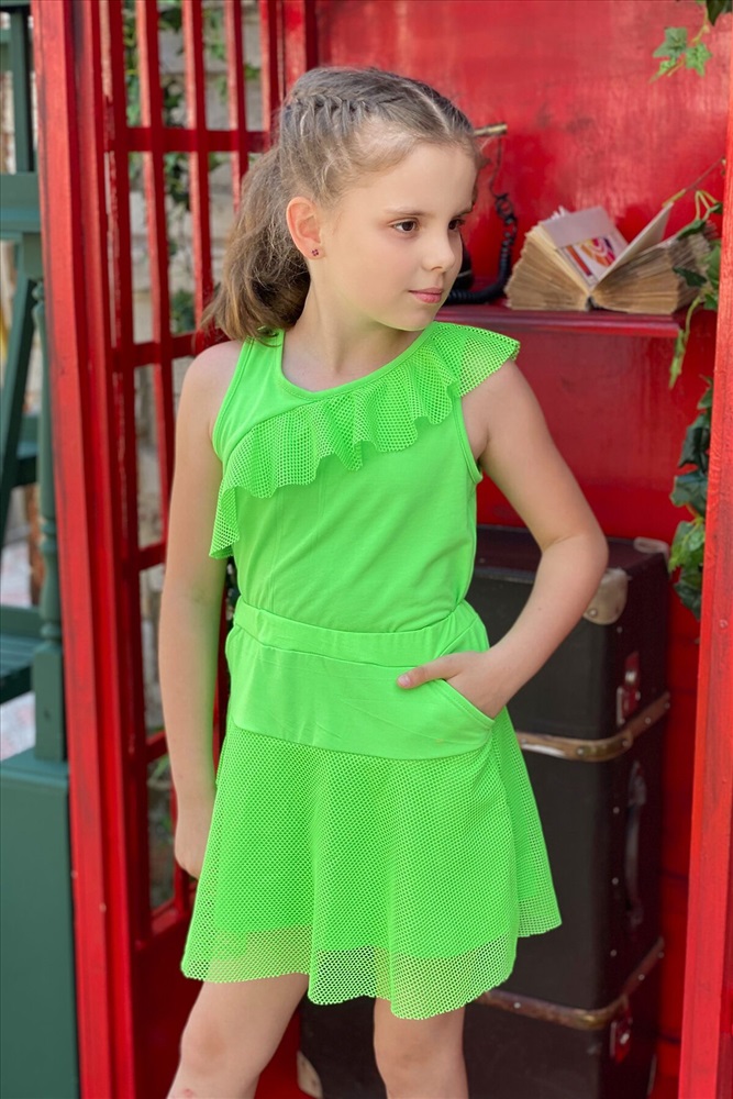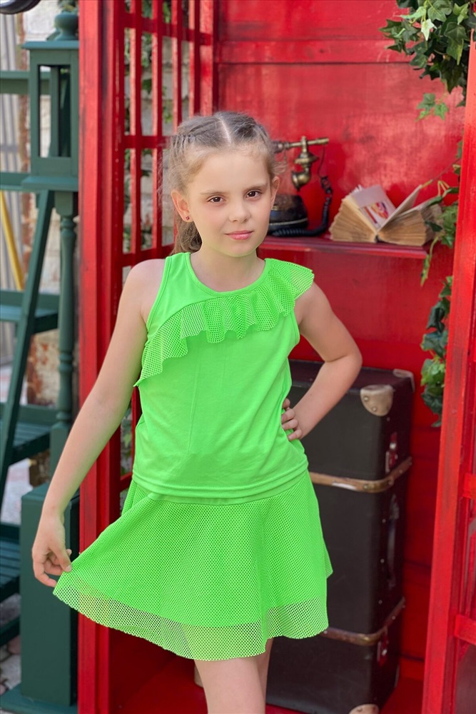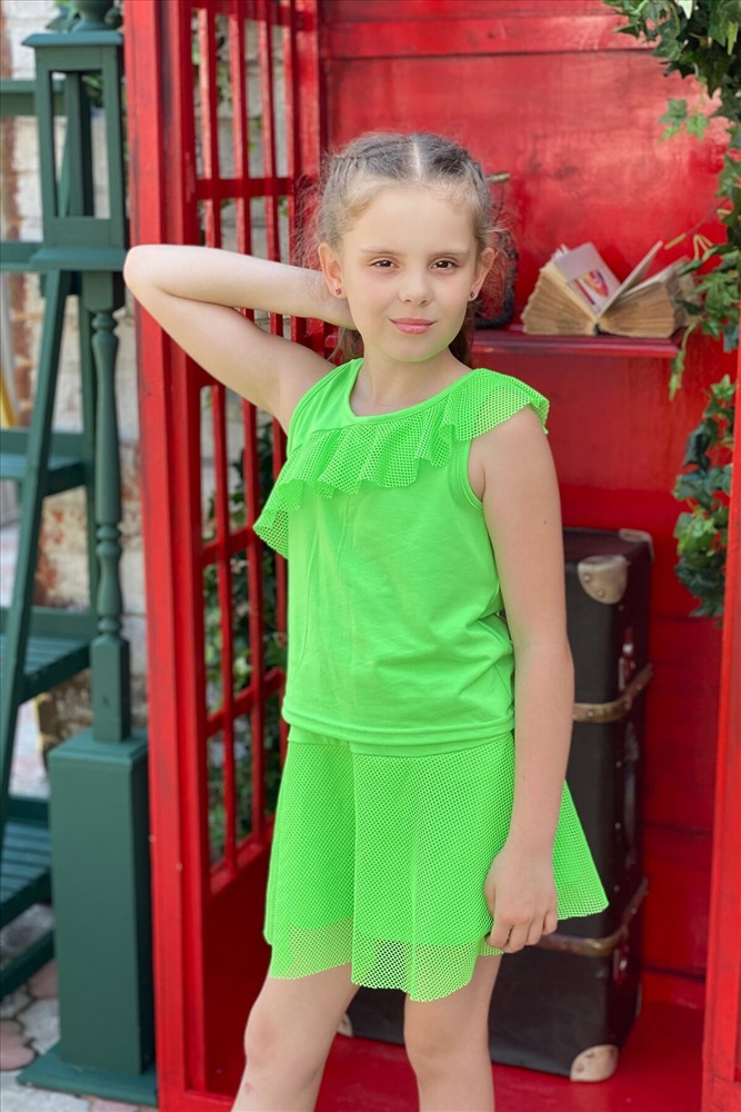ID товара: 679607 Состав: 50% Вискоза, 45% Полиэстер, 5% Лайкра Сезон: Весна/Лето Длина: Короткая Рукав: Без рукавов Модель юбки/платья: Расклешенная Рисунок: Без рисунка Декоративные элементы: Рюши Основная ткань: Вискоза | Кулирка с лайкрой Стиль: Повседневные Страна бренда: Россия Страна производства: Россия Костюм детский, состоит из майки и юбки. Маечка с рюшей, расположенной асимметрично. Юбка с двумя кармашками. Комментарии к товару