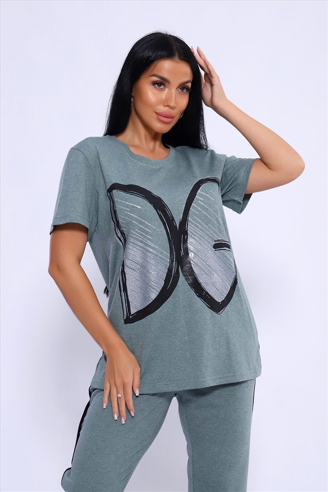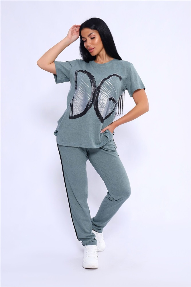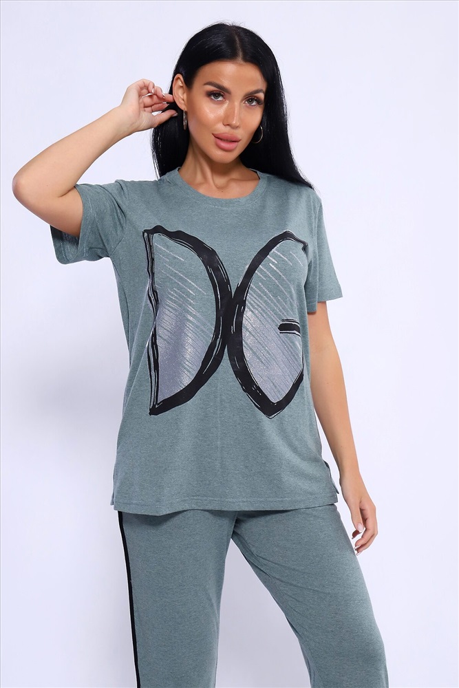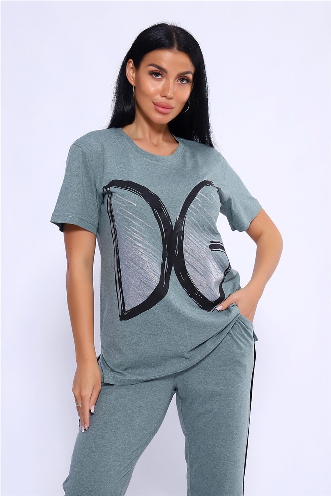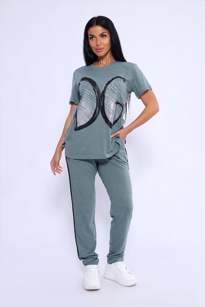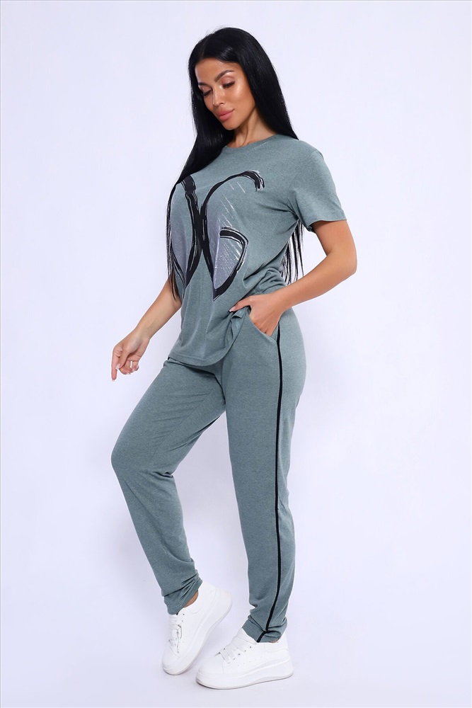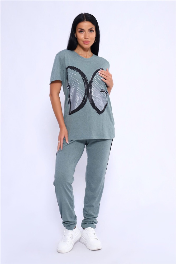Классический и удобный трикотажный костюм с брюками из 100%-го хлопка! В комплекте костюма представлены кофта свободного кроя и брюки c тонкими лампасами универсальной посадки. Кофта украшена ярким принтом, состоящим из крупных латинских букв, контрастирующими с общим фоном изделия. Кроме того, на спинке имеется неброский принт. Костюм - идеальный вариант домашней одежды для женщин, также прекрасно подойдет и для повседневной носки.